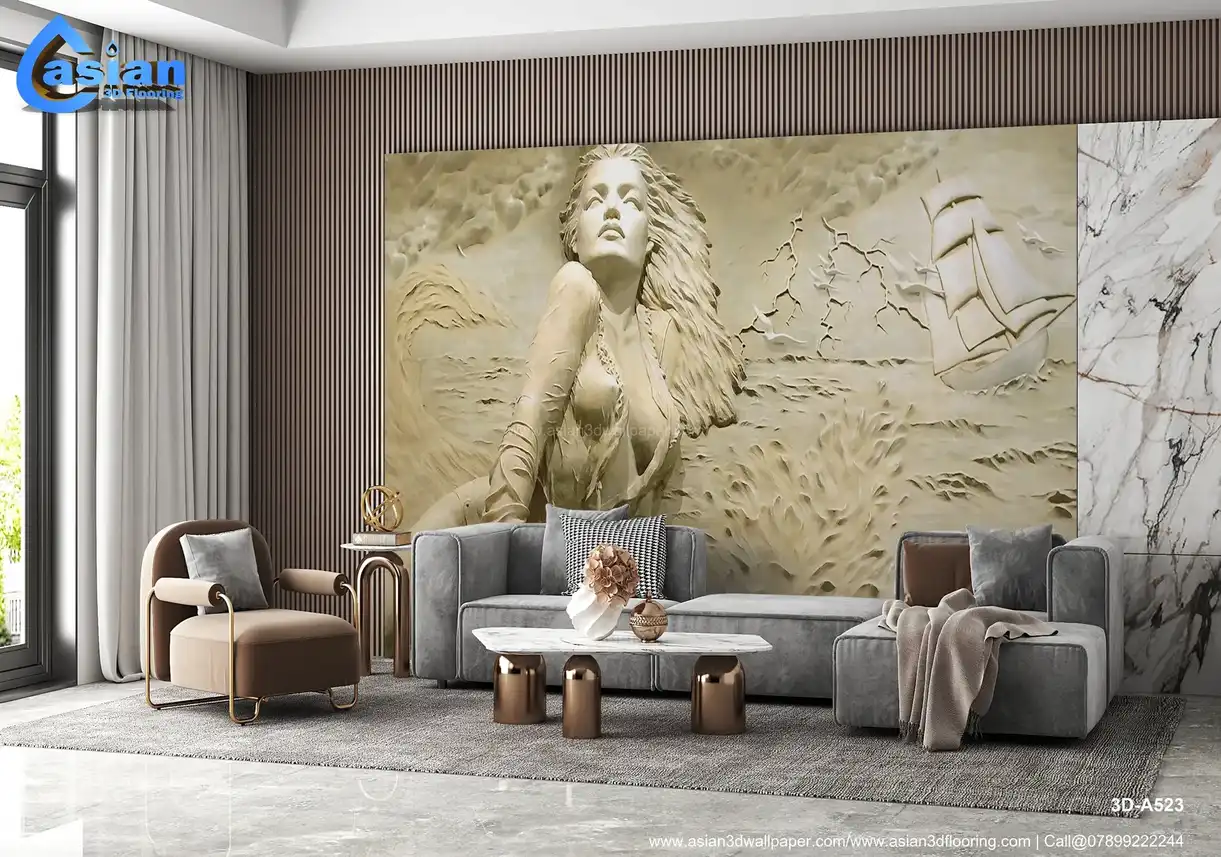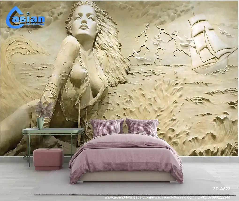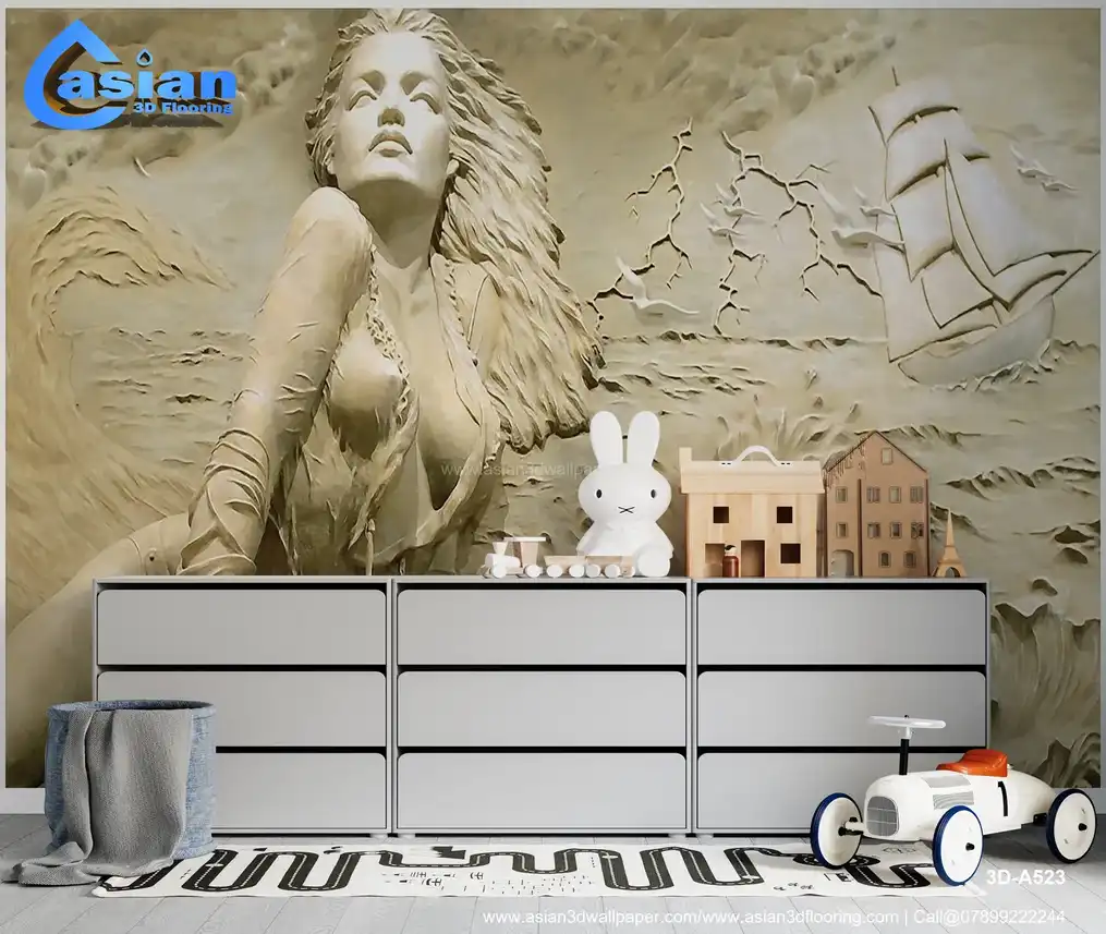 Add timeless elegance to your space with this sophisticated "Maritime Sculptural Relief Wallpaper." Featuring a stunning relief sculpture of a woman by the sea, with a classic sailing ship and dynamic ocean waves in the background, this wallpaper captures the beauty of adventure and resilience. The monochromatic sand and beige tones add a refined touch, making it perfect for creating a classic, artistic ambiance in living rooms, offices, or hallways. This wallpaper is ideal for those seeking a unique, textured look reminiscent of fine art sculptures. Made with eco-friendly materials, it?s designed for long-lasting beauty, bringing a sense of art and adventure into your interiors. Benefits:- Creates a timeless and refined atmosphere, ideal for classic and artistic spaces, eco-friendly and durable