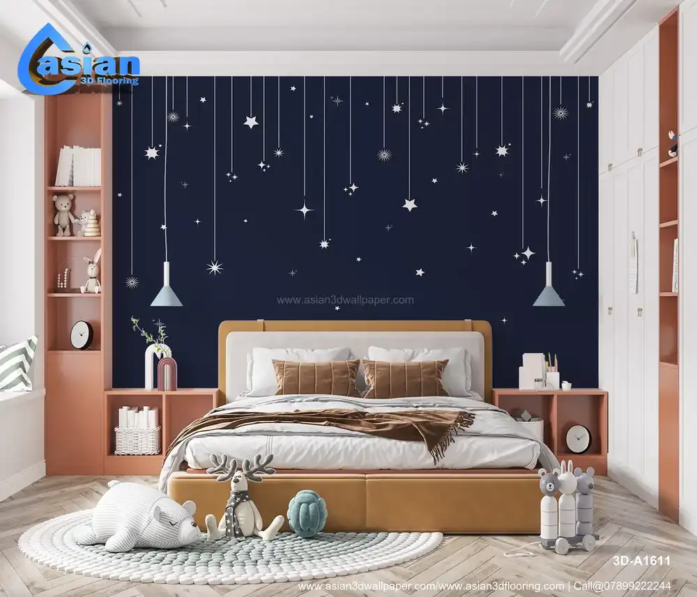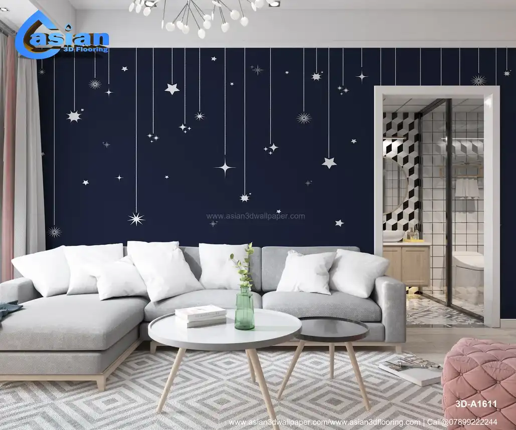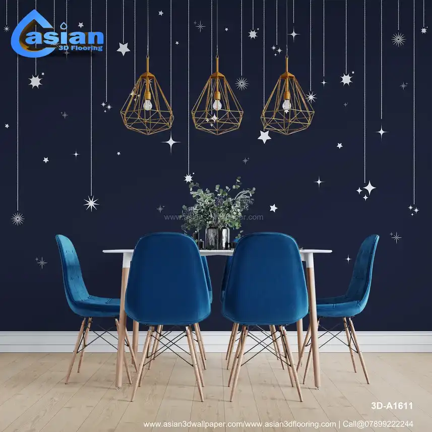 Create a serene and elegant atmosphere with this starry night sky wallpaper, featuring delicate white stars suspended by silver threads against a deep navy backdrop. The design evokes the peaceful beauty of a clear, starry sky, making it the perfect addition to any bedroom, living room, or nursery. Whether you want a touch of celestial beauty or simply wish to create a tranquil, restful space, this wallpaper transforms your room into a dreamy star-filled haven. Benefits:- Adds a serene and elegant atmosphere to your space, ideal for creating a dreamy, peaceful ambiance in bedrooms, nurseries, and living rooms. Its soft white stars against a dark sky evoke the beauty of a starry night sky.