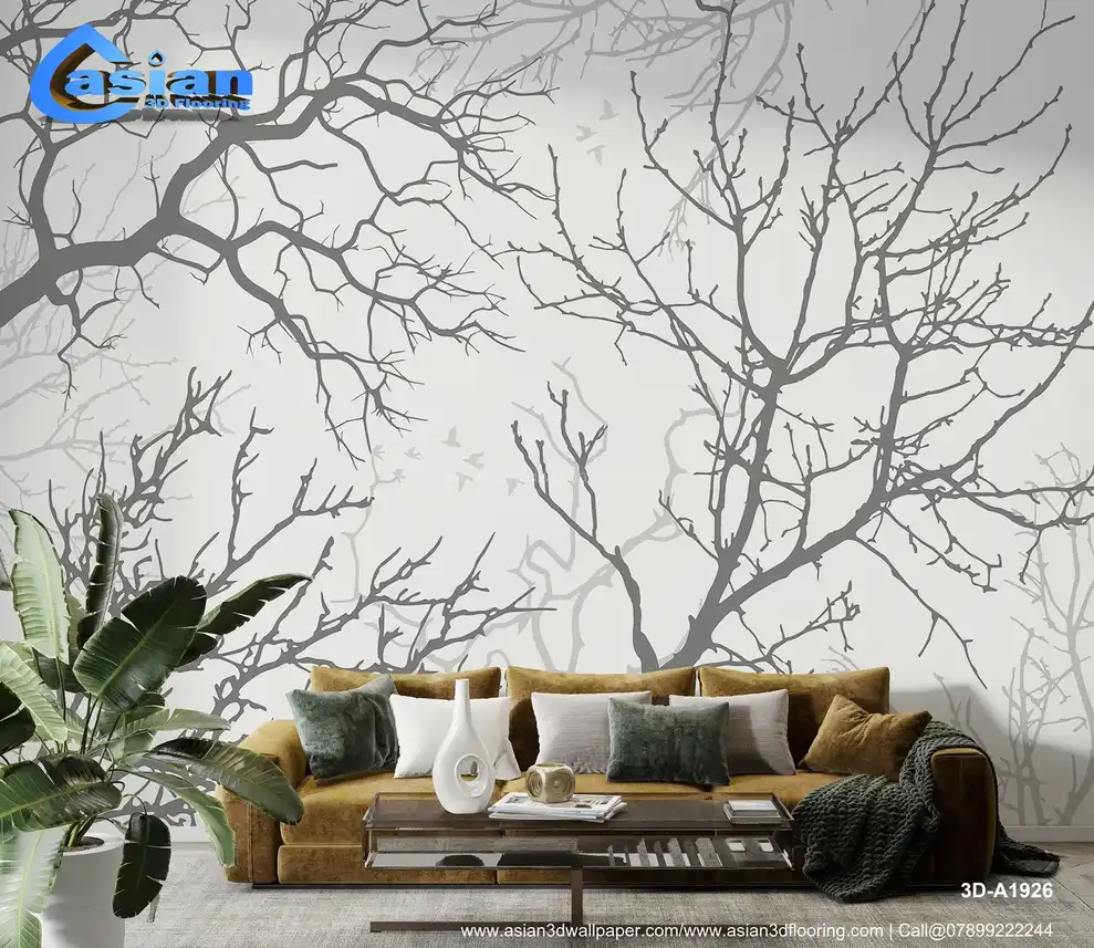 Elegant Tree Branches Wallpaper for Minimalist Interiors||3D-A1926
