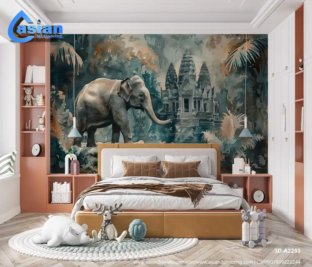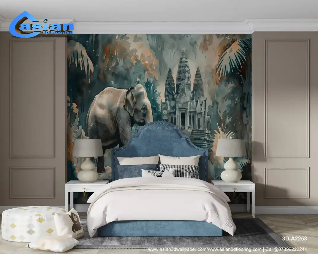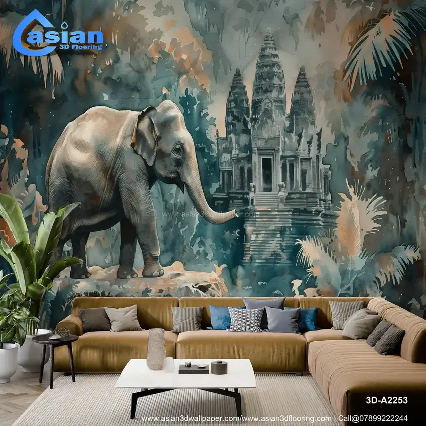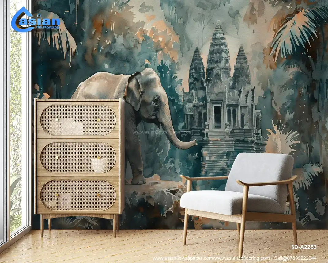 This captivating watercolor-style art print features an elephant peacefully walking towards a majestic temple, reminiscent of Angkor Wat, set in a lush Southeast Asian landscape. The artwork's muted colors and serene composition evoke a sense of tranquility and historical significance. Perfect for adding a touch of culture, serenity, and artistic flair to living rooms, studies, offices, or meditation spaces. Available as a high-quality print or original painting (specify if known). Shop Asian 3D Wallpaper! Benefits:- Brings the beauty and history of Southeast Asia into your home. Creates a calming and reflective atmosphere. Adds a unique and artistic touch to your decor with its muted palette. Available in various sizes and formats. A great gift for travelers and art lovers.