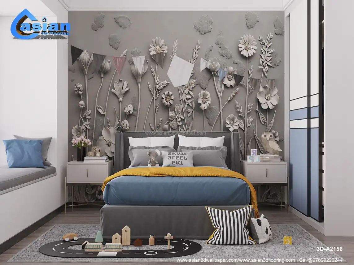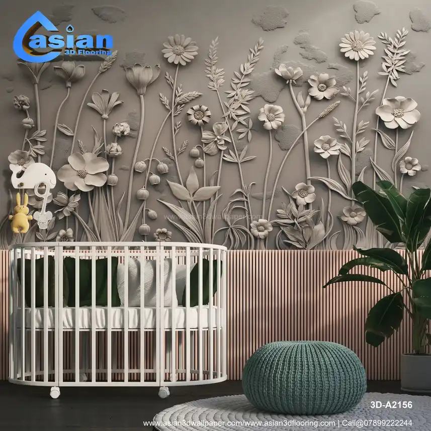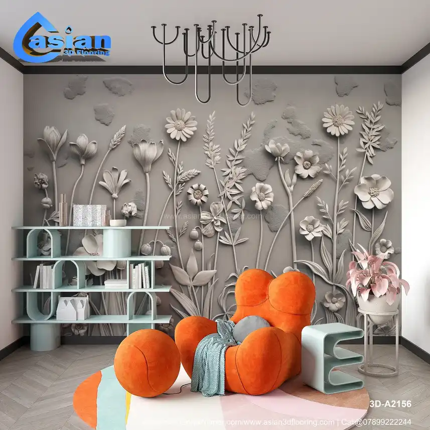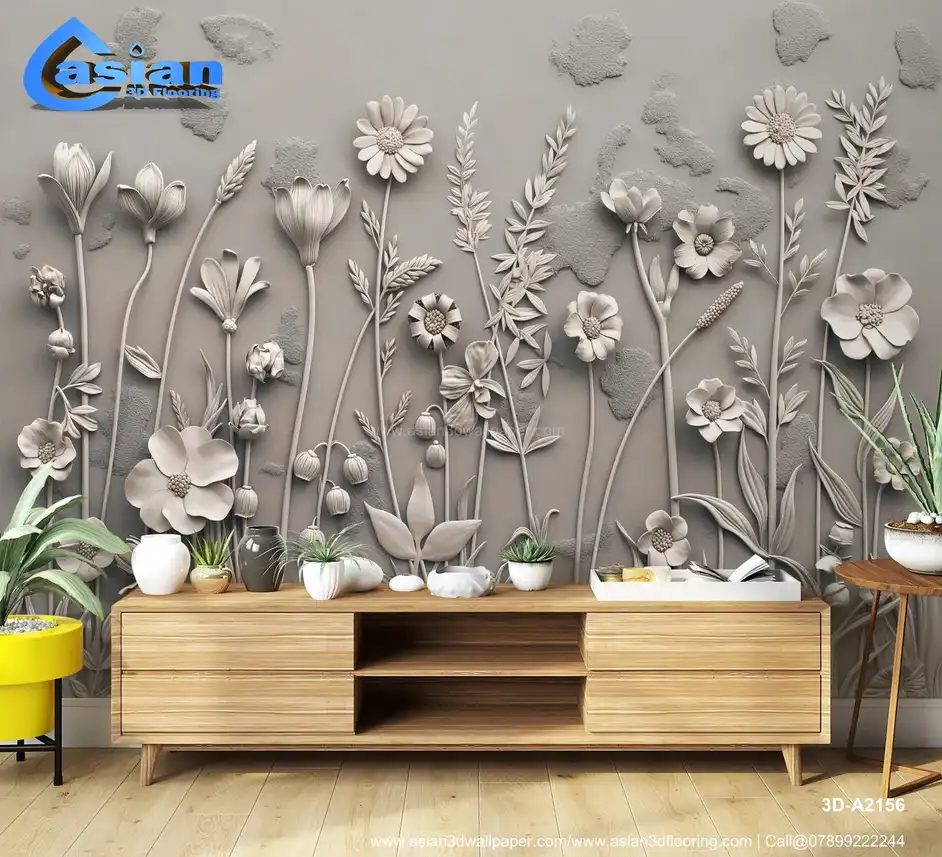 Embossed Gray Floral Wall Art - 3D Botanical Relief Design||3D-A2156