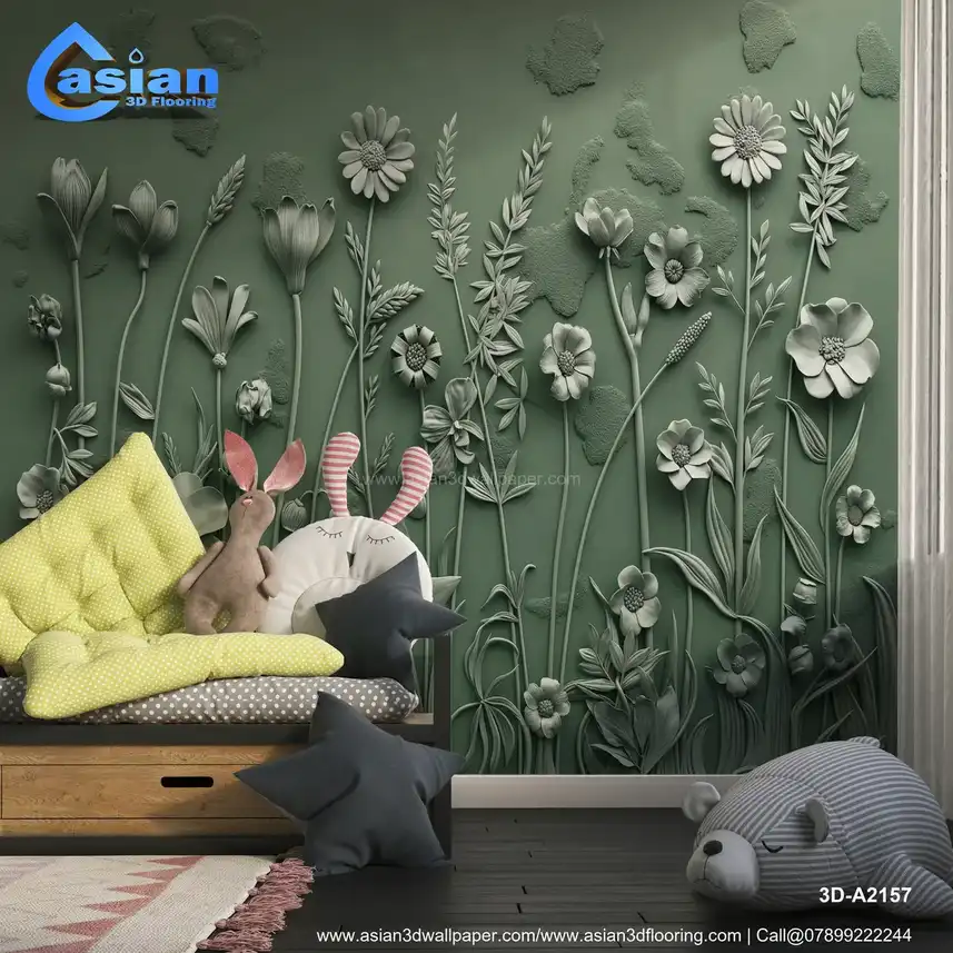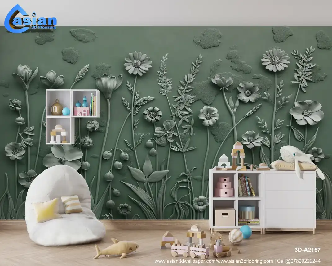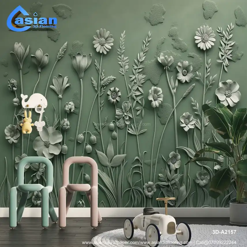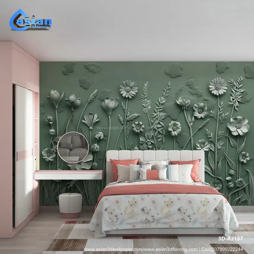 Embossed Green Floral Wall Art - 3D Botanical Relief Design||3D-A2157