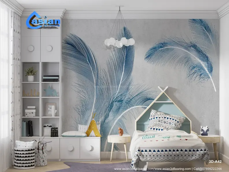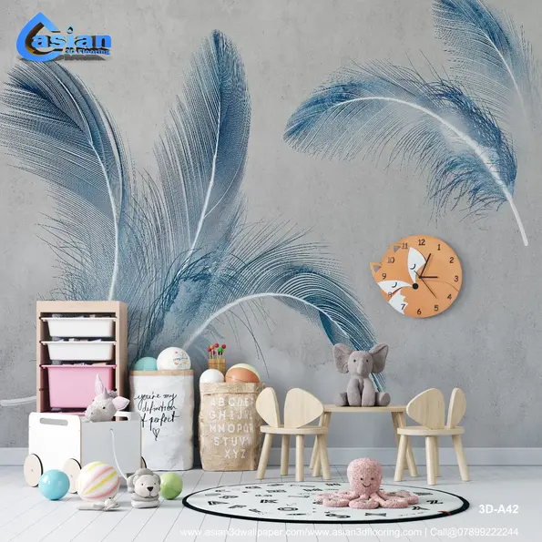 Transform your walls with this elegant blue feather wallpaper featuring intricate feather detailing against a muted gray textured backdrop. Perfect for creating a serene and sophisticated atmosphere in bedrooms, living rooms, or creative spaces. Ideal for modern and minimalist interior designs. Product Benefits :- Creates a calming and artistic ambiance with intricate feather designs. Ideal for minimalist and modern interiors. Adds a touch of luxury and sophistication to any room.