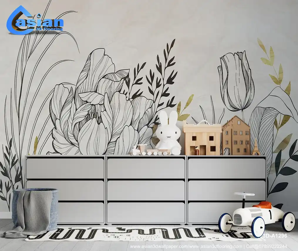 This stunning wallpaper features a sophisticated design of floral line art, combining intricate black outlines with soft gold accents on a delicate light background. The design includes lush flowers like peonies and tulips, paired with elegant leaves and stems, creating a modern, minimalistic aesthetic. Perfect for adding a touch of luxury and elegance to any living room, bedroom, or office space. The neutral tones and fine details offer versatility while providing a timeless and chic atmosphere. Benefits:- Add an elegant, modern touch to any space with this beautiful floral line art wallpaper, featuring gold accents and sophisticated details.