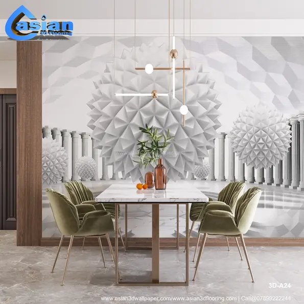 Add a modern and futuristic touch to your interiors with this stunning 3D abstract wallpaper featuring geometric spheres and symmetrical columns. The monochromatic white design creates a sense of depth and dimension, ideal for contemporary living rooms, offices, or feature walls. Perfect for creating a minimalist yet bold statement, this wallpaper blends artistry with modern design aesthetics. Product Benefits :- Creates a modern and futuristic vibe. Perfect for minimalist and bold interiors. Adds depth and dimension to living or office spaces. Ideal for feature walls with a sophisticated look.
