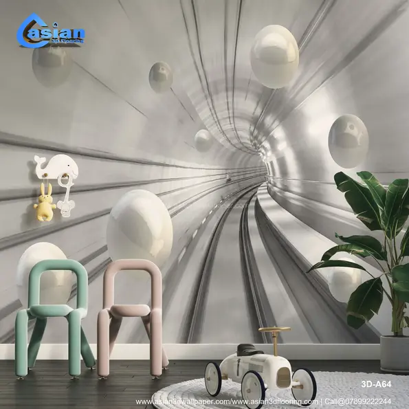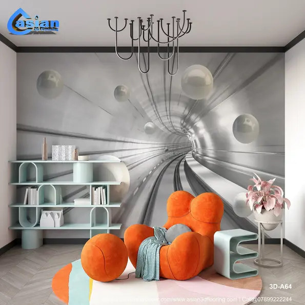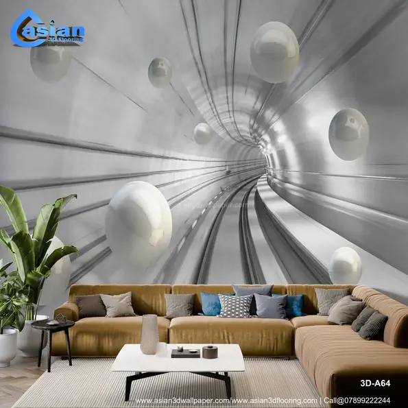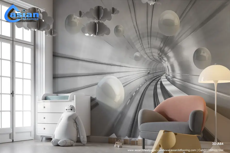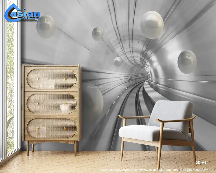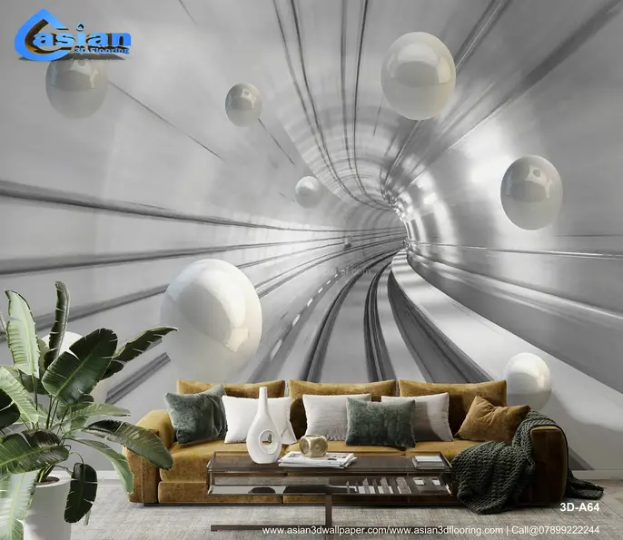 This futuristic 3D tunnel wallpaper creates a striking visual effect, making it ideal for those looking to add depth and a high-tech feel to their spaces. With a sleek metallic tunnel and floating spheres, this wallpaper is perfect for modern, minimalistic homes, tech-savvy offices, or entertainment rooms. The clean lines and metallic textures provide a dynamic aesthetic that brings movement and energy to your walls. Ideal for accent walls, this wallpaper enhances contemporary settings and adds a futuristic touch to any room. Product Benefits :- This wallpaper is designed to give a futuristic vibe with its metallic tunnel and floating sphere elements, adding depth and a modern touch to contemporary interiors.