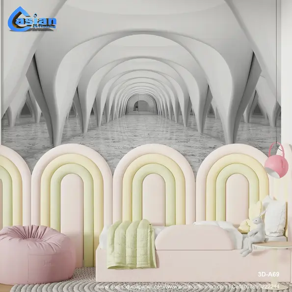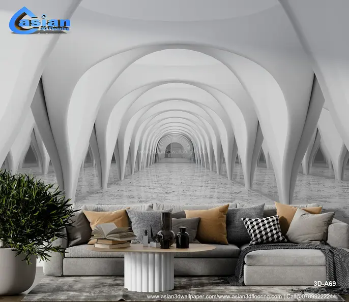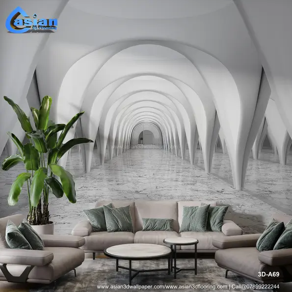 Enhance your interiors with this stunning futuristic archway wallpaper featuring sleek, white arches and a luxurious marble floor effect. Perfect for creating a sense of depth and sophistication, this design is ideal for modern living rooms, offices, or hallways. Its minimalistic yet striking aesthetics make it a timeless choice for contemporary spaces. Crafted with high-quality, eco-friendly materials, this wallpaper not only adds style but also durability. Ideal for creating an illusion of spaciousness in compact areas. Product Benefits :- Adds depth and elegance, creates an illusion of space, eco-friendly and durable.