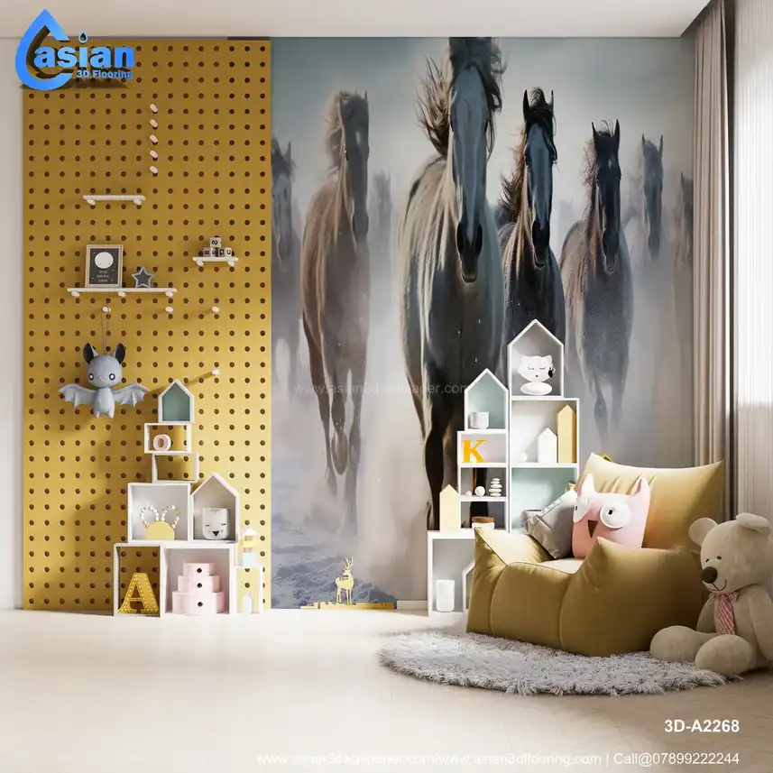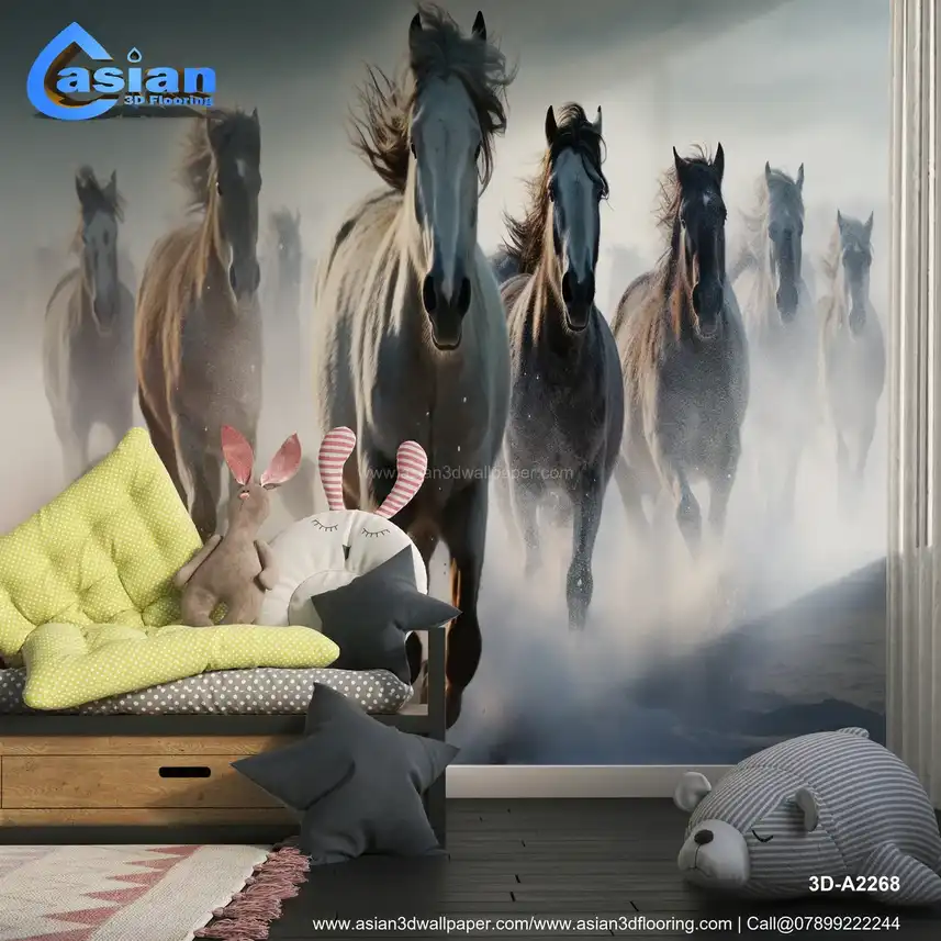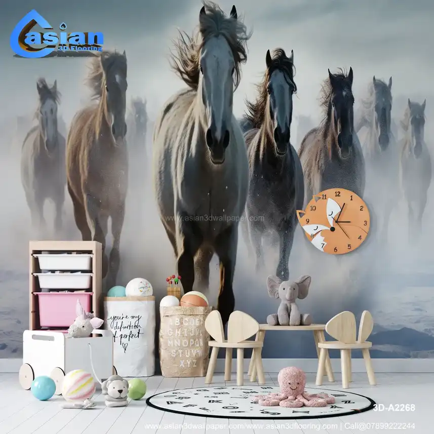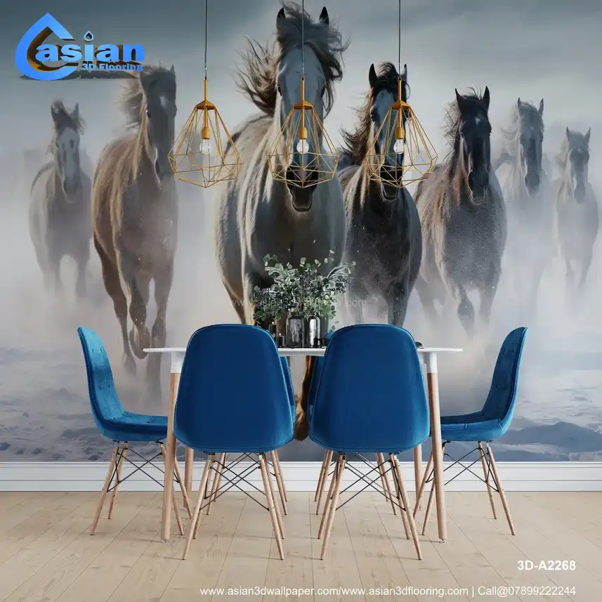 This breathtaking photograph captures the raw power and beauty of a herd of wild horses, possibly including Percheron, Galineers Cob, Camargue, Shire, Mustang, Arabian, Andalusian, Icelandic, Lipizzan, or other white horses, galloping through a pristine, snow-covered landscape. The image evokes a sense of freedom and the untamed spirit of nature. Perfect for adding a touch of wild beauty to living rooms, offices, or any space that needs a dramatic focal point. Available as a high-quality print. Shop Asian 3D Wallpaper! Benefits:- Brings the beauty and power of nature into your home. Adds a dramatic and dynamic focal point to any space. Evokes a sense of freedom and wildness. High-quality print ensures lasting beauty. Perfect as a gift for horse lovers and nature enthusiasts, especially those interested in specific breeds or the beauty of white horses.