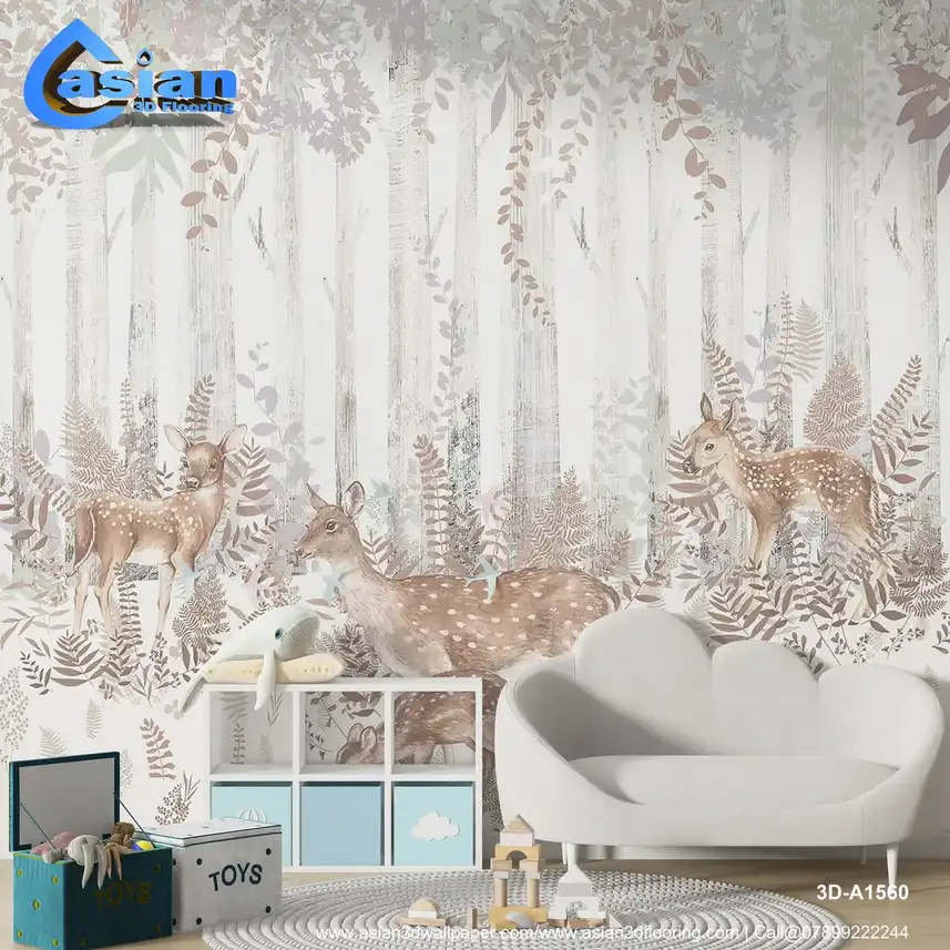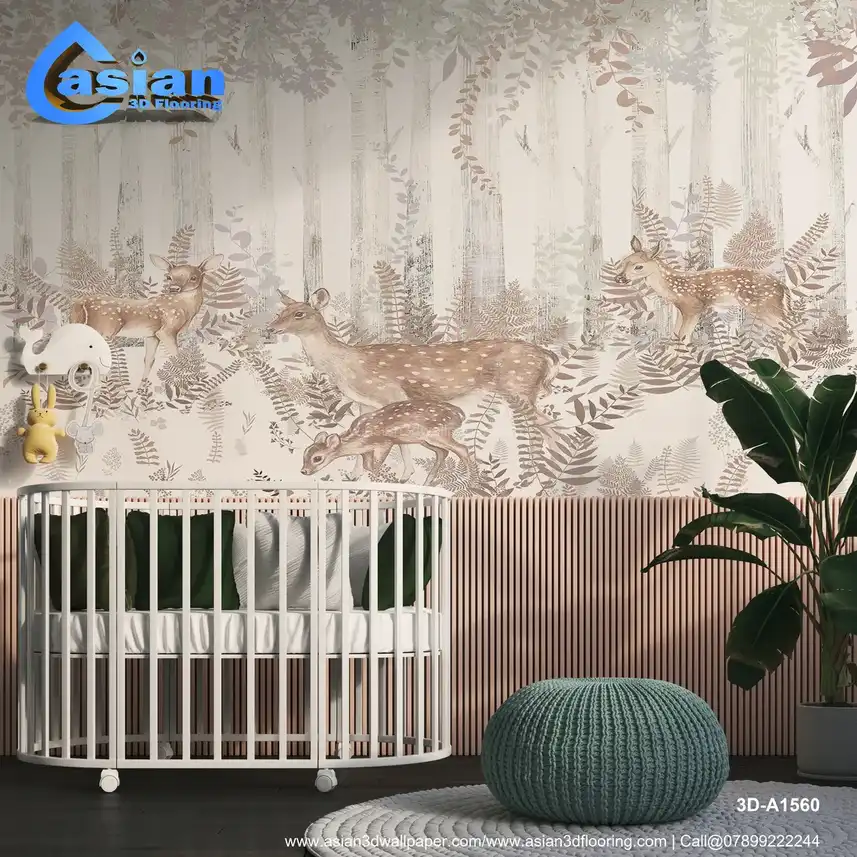 This tranquil wallpaper features a serene forest scene with deer and lush ferns, rendered in soft pastel colors. Perfect for creating a peaceful, nature-inspired ambiance in your home or nursery. Benefits:- A serene, gentle design bringing the peacefulness of a forest with deer and ferns to your space, creating a calm and tranquil atmosphere.
