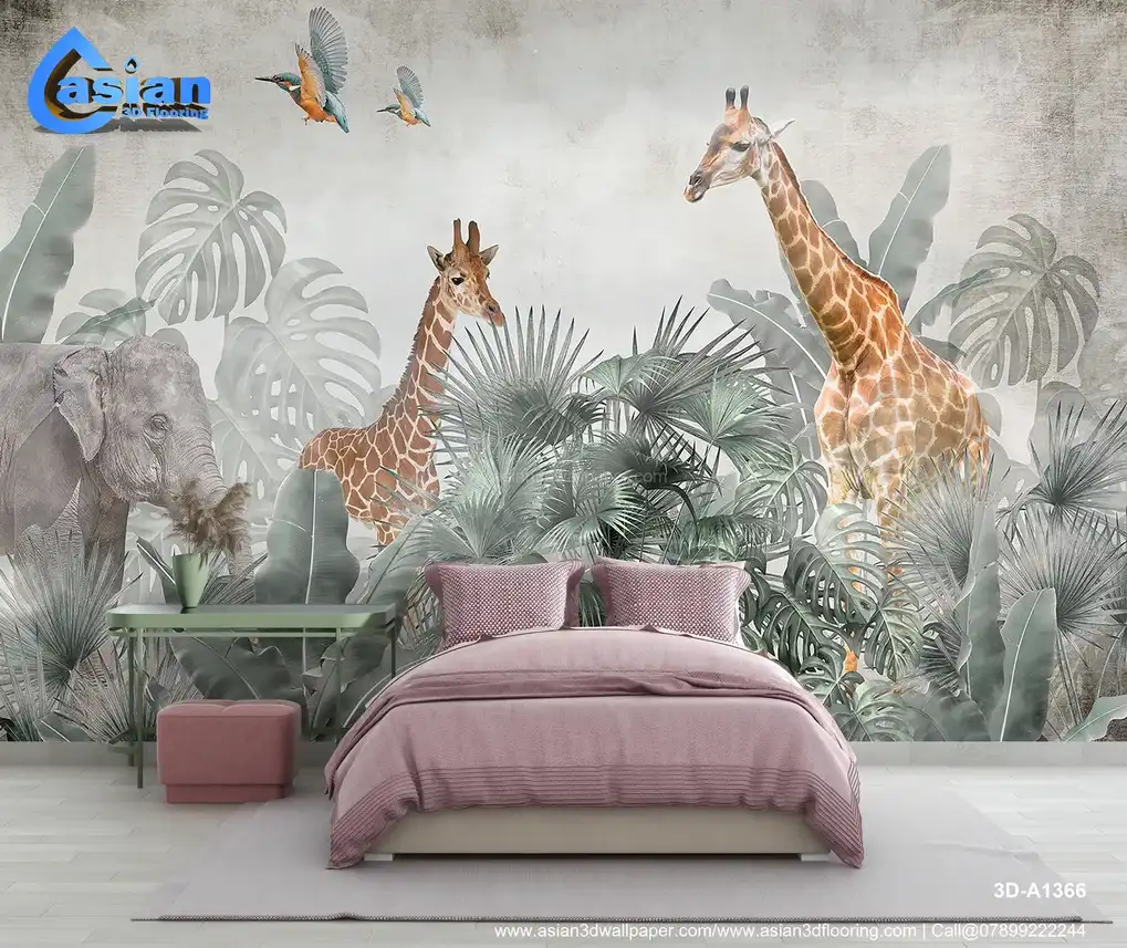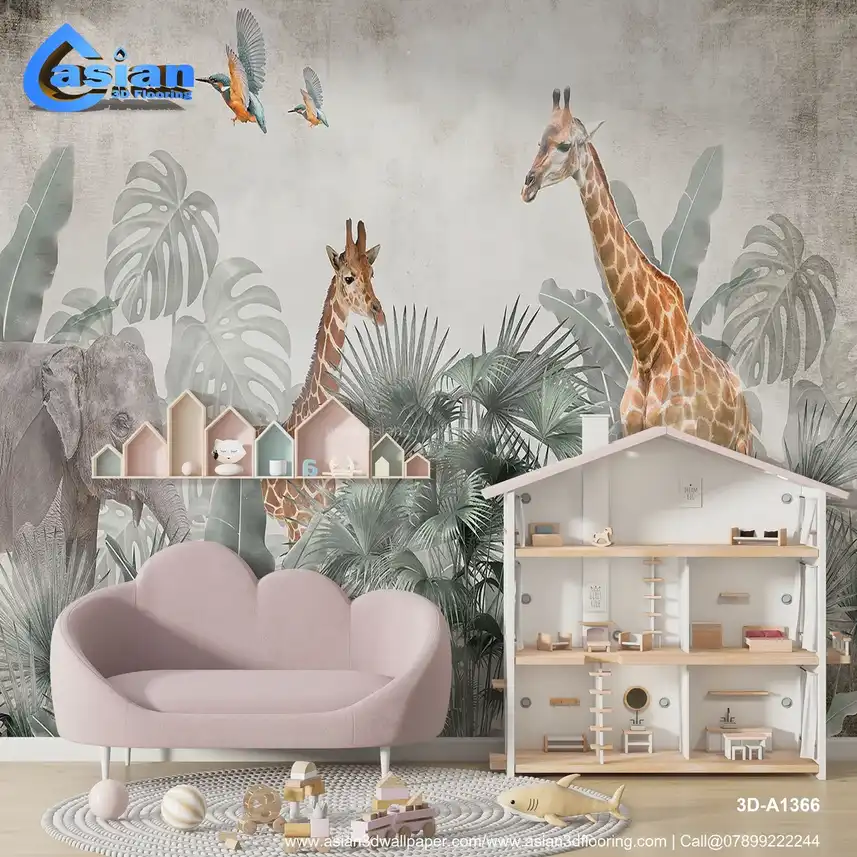 This stunning jungle wallpaper features majestic giraffes and an elephant among lush tropical foliage, perfect for creating a serene, nature-inspired space. Benefits:- Adds a calming, nature-inspired vibe with animal-themed design, perfect for living rooms, nurseries, and more.