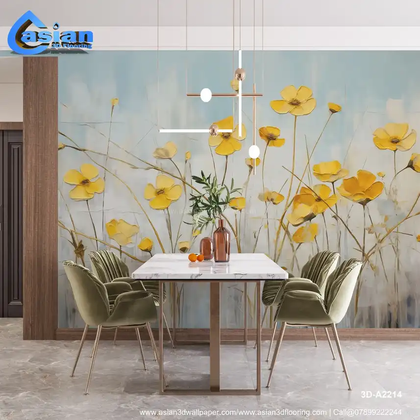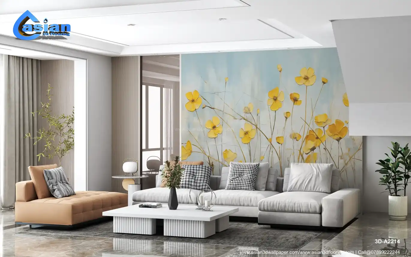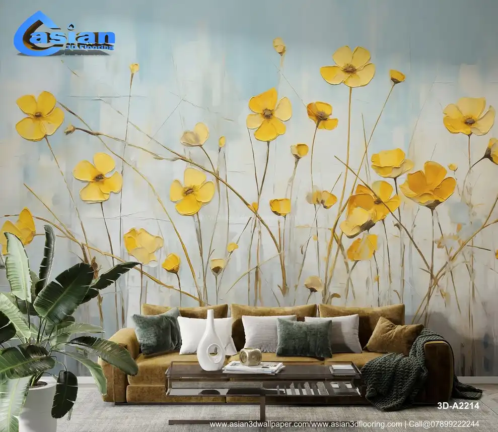 Golden Whispers: Yellow Wildflower Wall Mural||3D-A2214