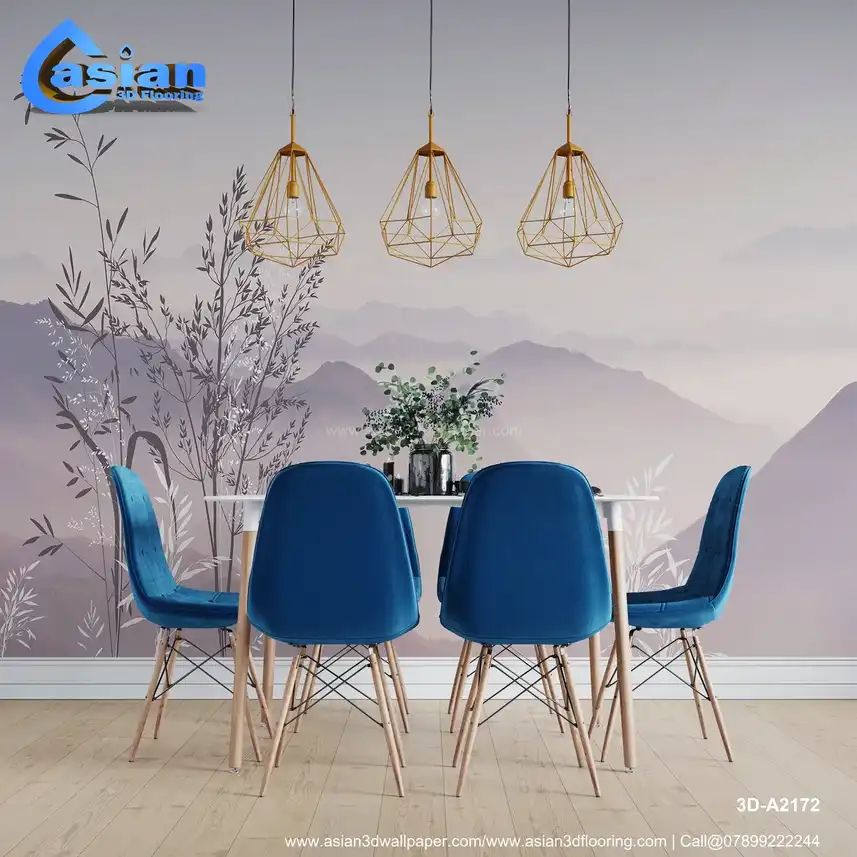 Create a tranquil and serene atmosphere with this stunning landscape wall mural featuring a lavender-hued misty mountain range. The subtle botanical silhouettes add a touch of delicate beauty. Perfect for bedrooms, living rooms, or meditation spaces. Made with high-quality, durable materials for easy installation and long-lasting beauty. Visit our Bangalore, Vijayanagar, Majestic store to explore our collection of nature-inspired and color-themed wall murals. Benefits:- Creates a calming and peaceful atmosphere with a unique color palette. Adds a touch of nature's beauty and delicate elegance to your interior. Made with high-quality, durable materials. Easy to install and remove. Transforms your space into a tranquil retreat with a touch of color.