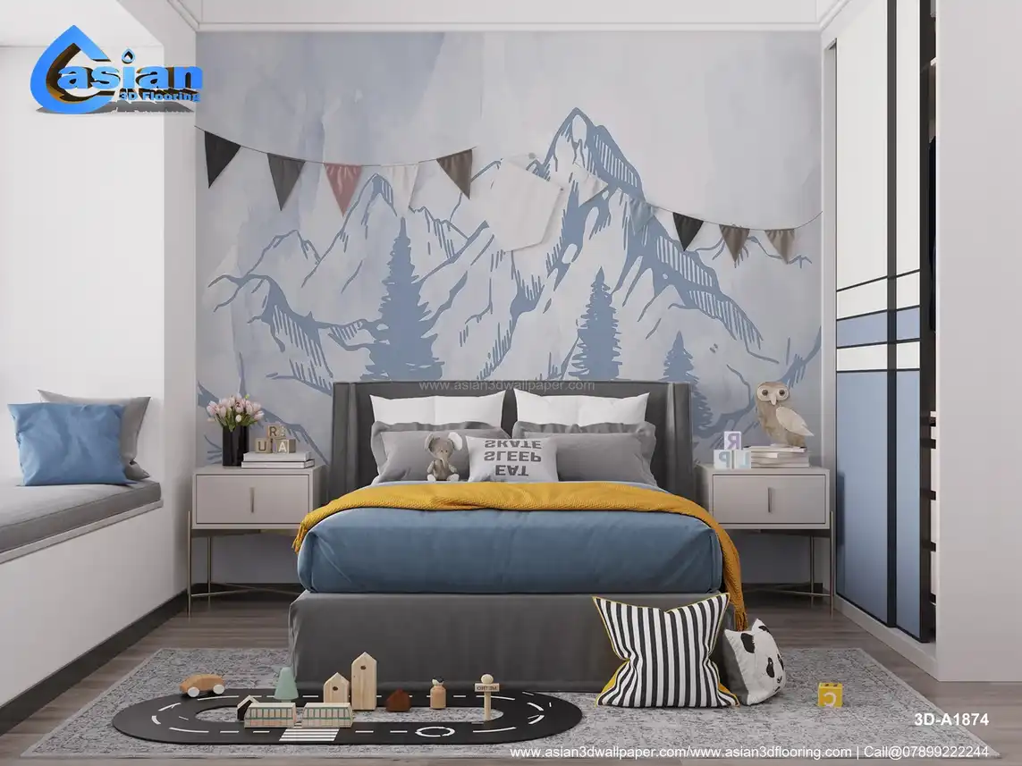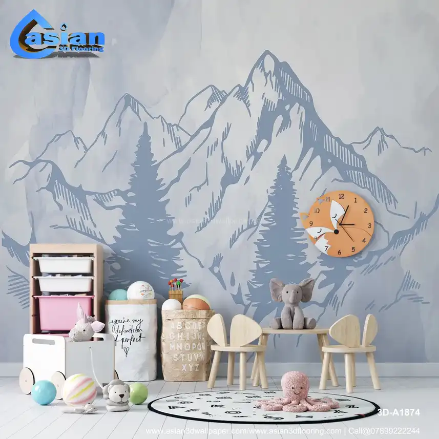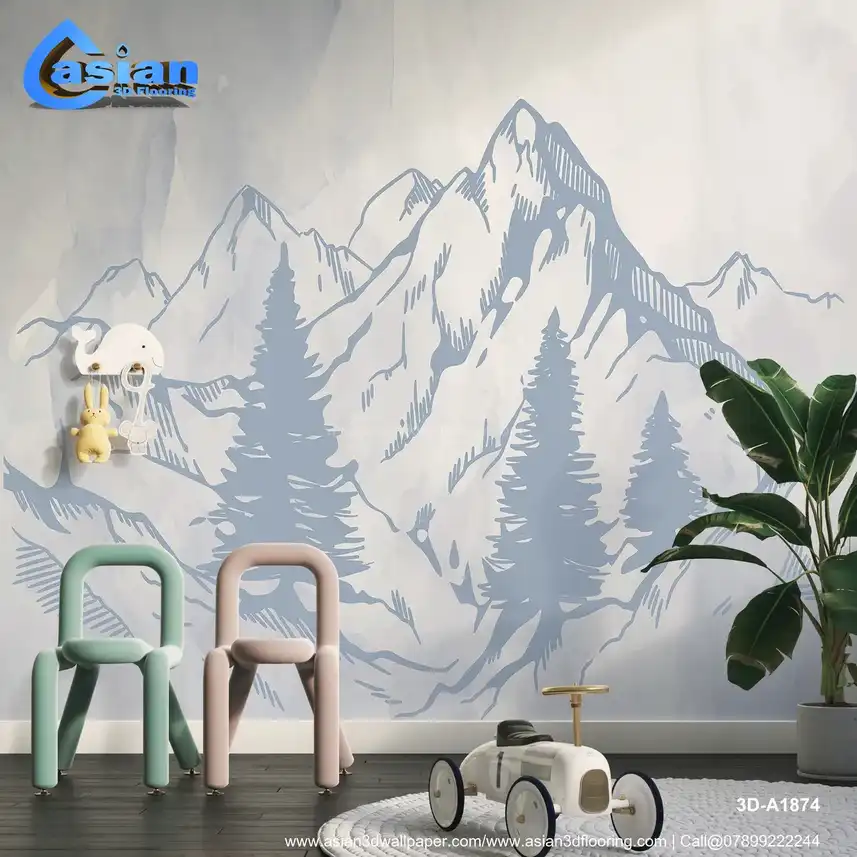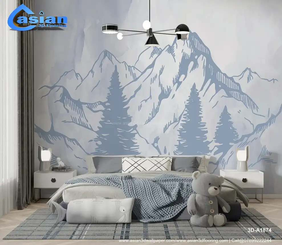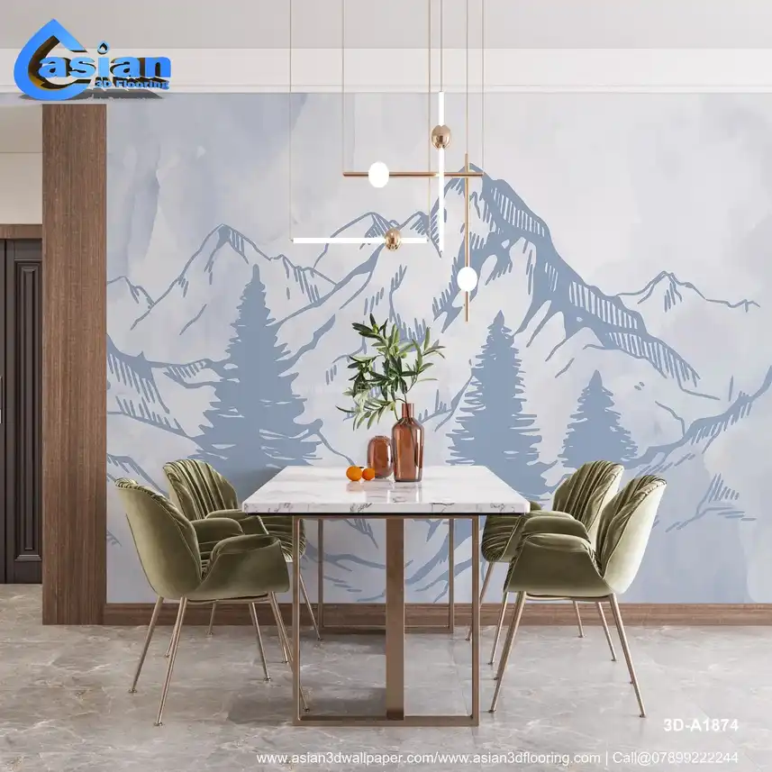 Light Blue Mountain Landscape Wallpaper ? Serene Art||3D-A1874