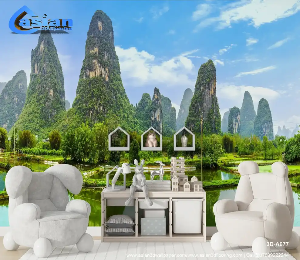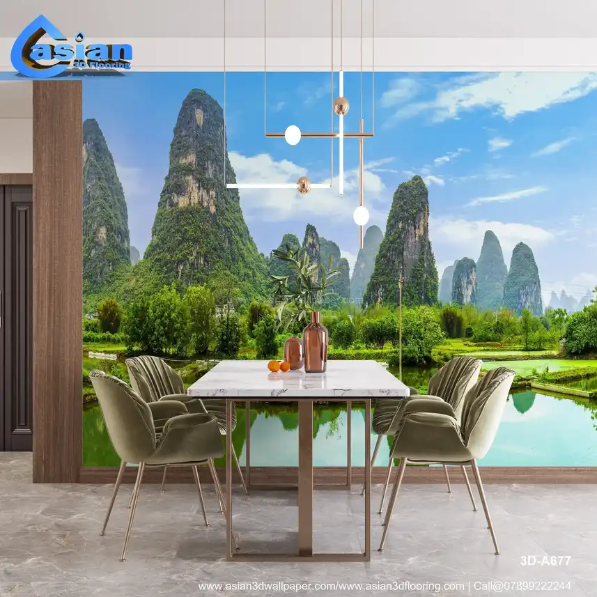 Immerse yourself in the breathtaking beauty of Southern China with this stunning landscape wallpaper. Featuring the iconic karst mountains of the Guilin/Yangshuo region, possibly the Yulong River near Lijiang, reflected in tranquil waters. Perfect for creating a serene and inspiring atmosphere in your home or office. High-quality print captures the vibrant greens and majestic scenery. Benefits:- Brings the beauty and tranquility of a classic Chinese landscape into your space. Creates a calming and inspiring atmosphere. High-quality print captures the detail and vibrancy of the scenery. Transforms any room into a window to a breathtaking natural wonder.