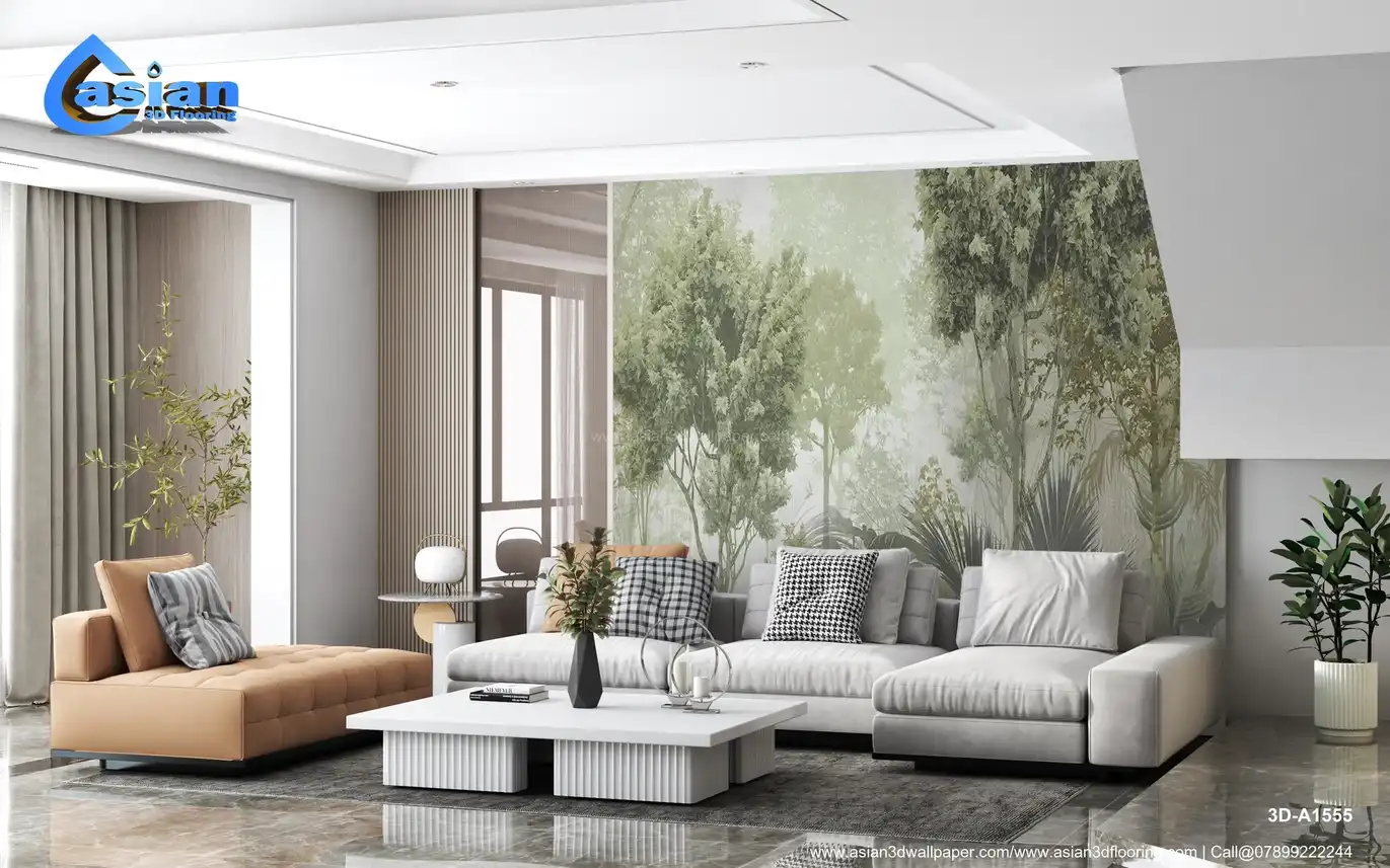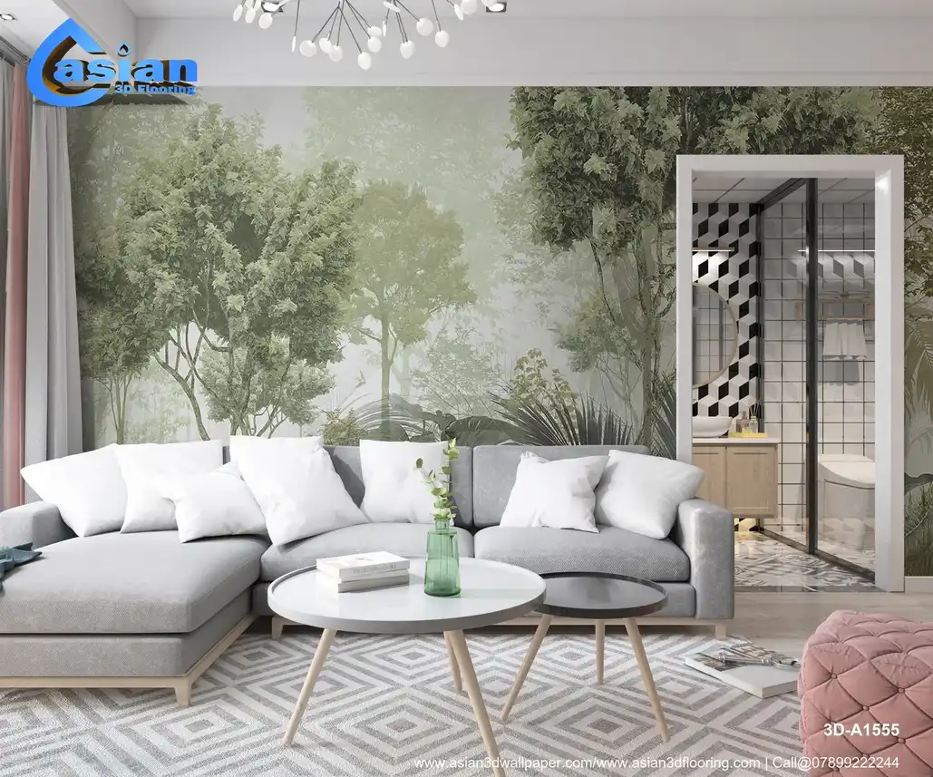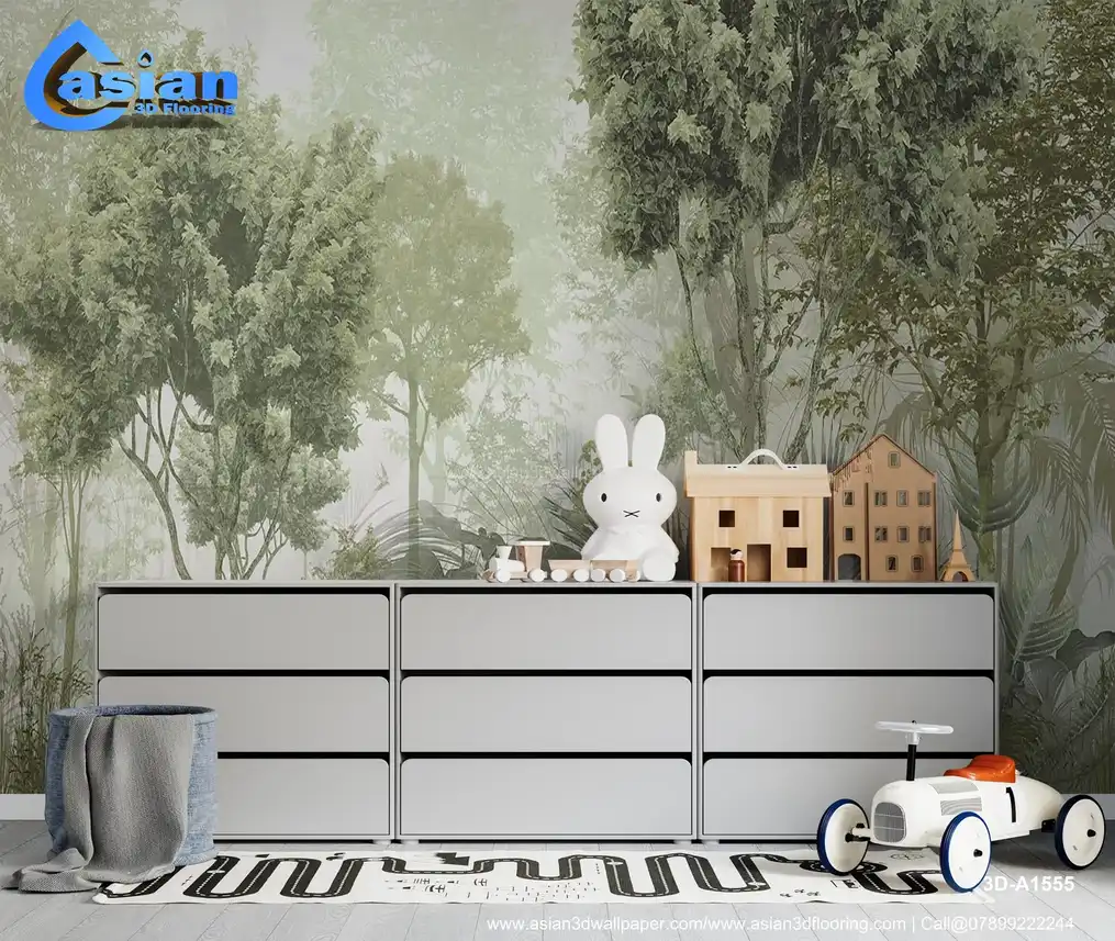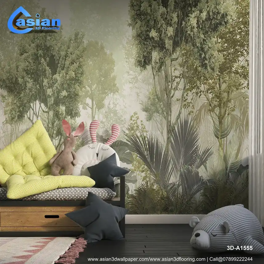 Lush Green Forest Wallpaper with Dense Foliage and Tranquil Vibe||3D-A1555