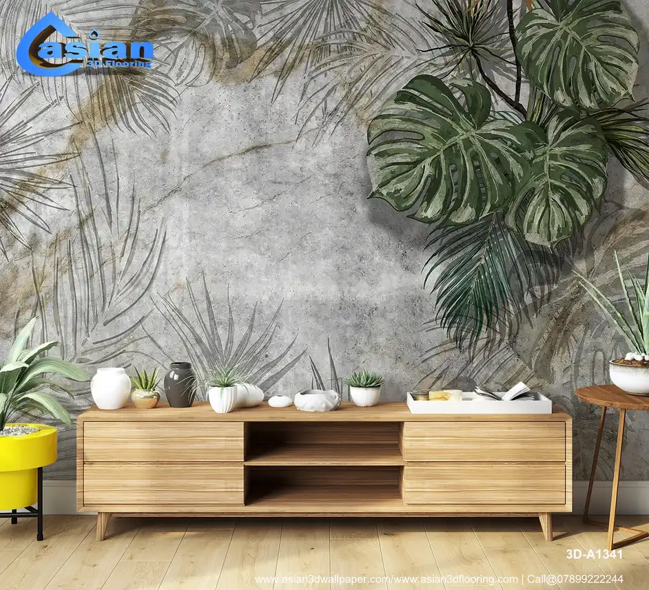 Lush Green Monstera Leaves Wallpaper||3D-A1341