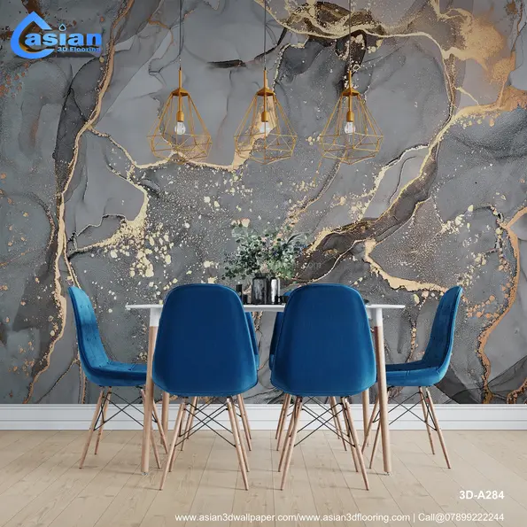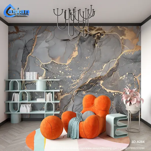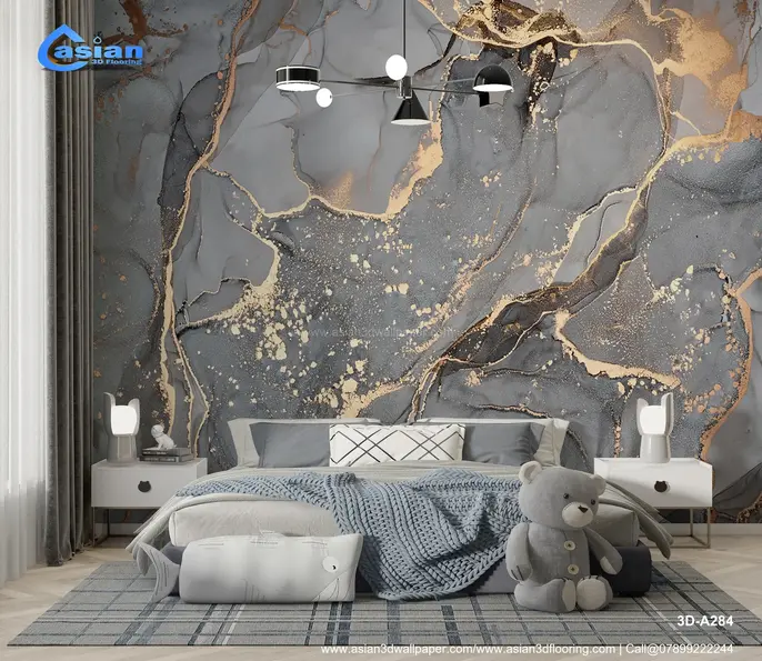This elegant 3D wallpaper features a sophisticated abstract marble design with flowing gold accents. Ideal for modern spaces, it adds a touch of luxury and texture to any room. Product Benefits :- Enhances the room with a luxurious, artistic feel, perfect for high-end interior design projects.