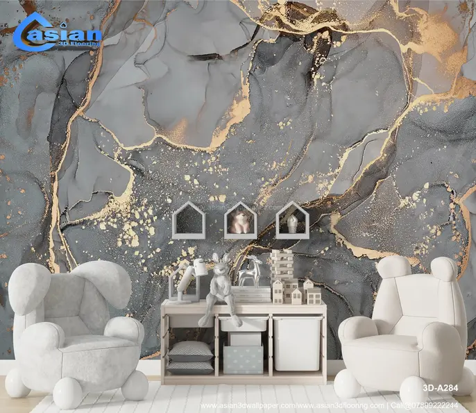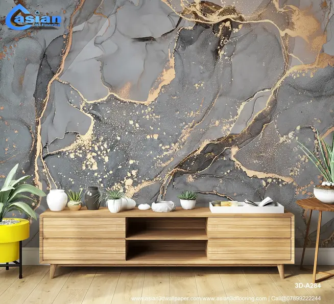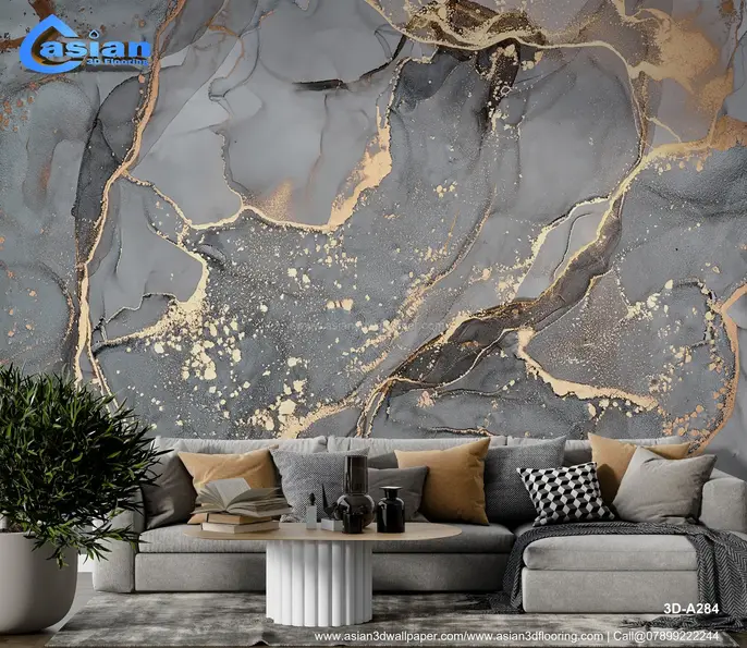 Luxury Abstract Marble 3D Wallpaper with Gold Accents||3D - A284