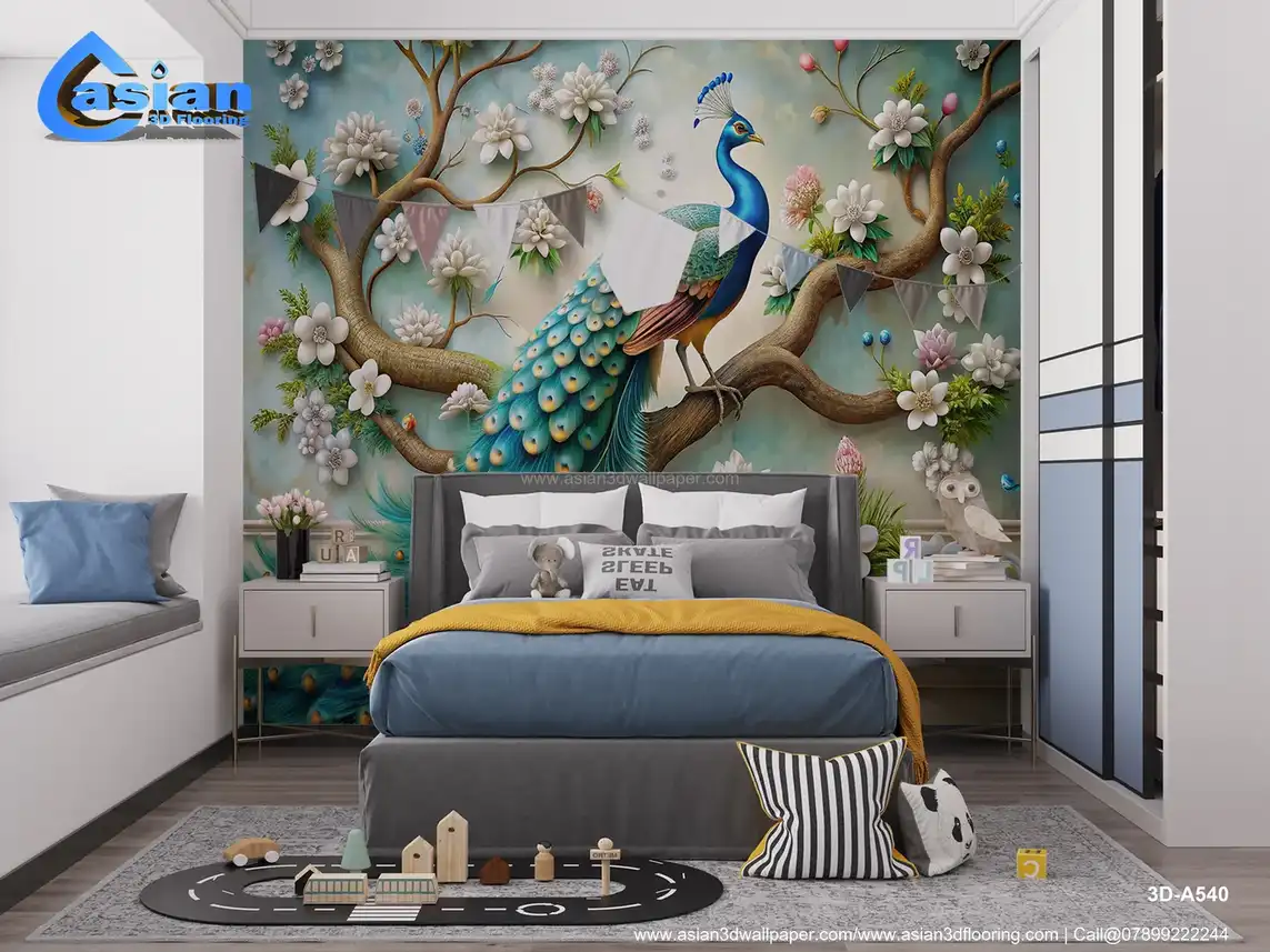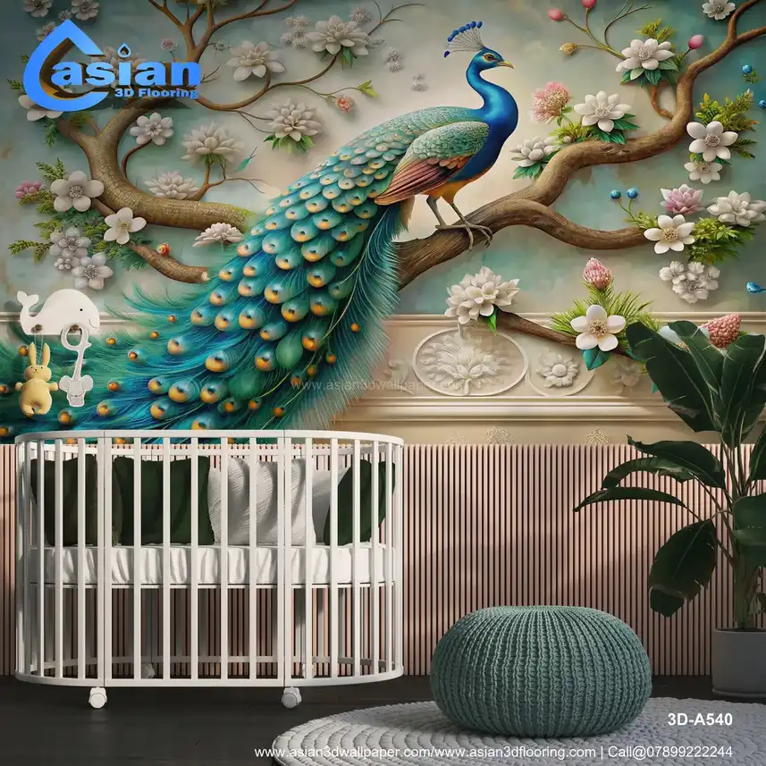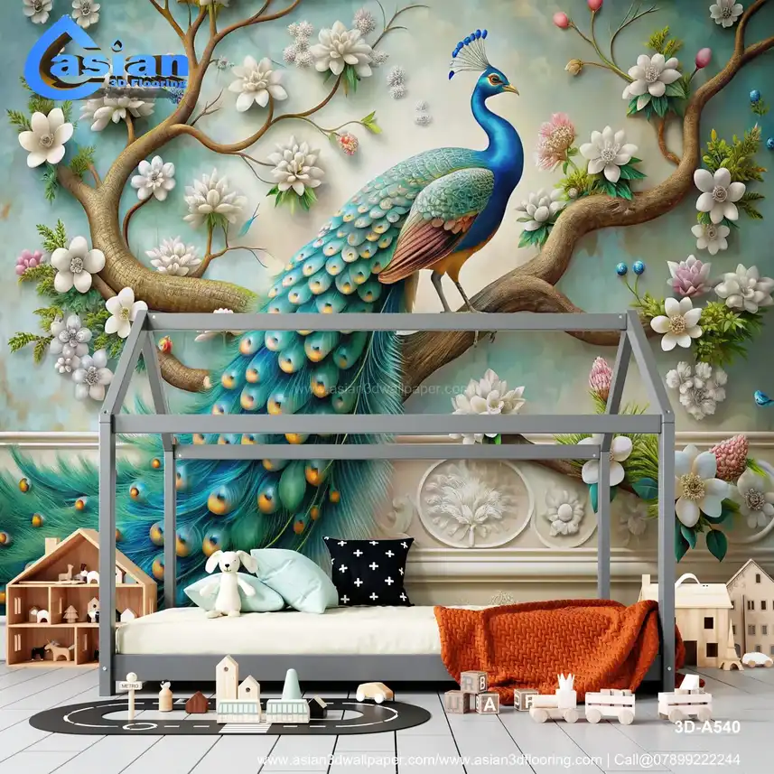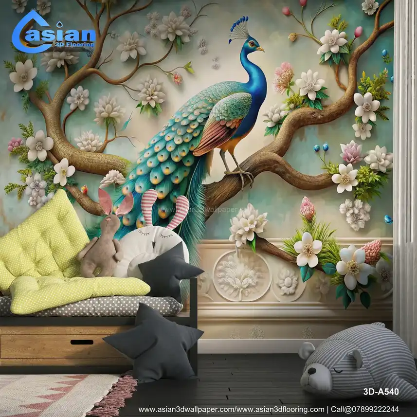 Majestic Peacock and Floral Art Wallpaper - Elegant Nature-Inspired Decor||3D-A540