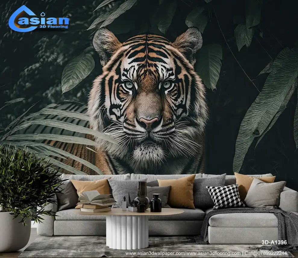 Majestic Tiger Close-up with Jungle Background||3D-A1396