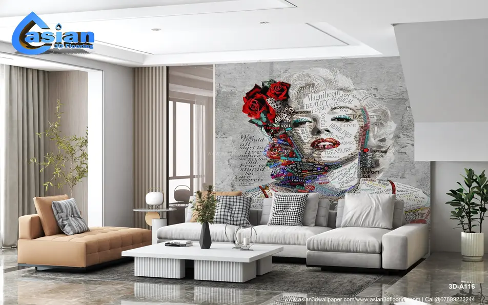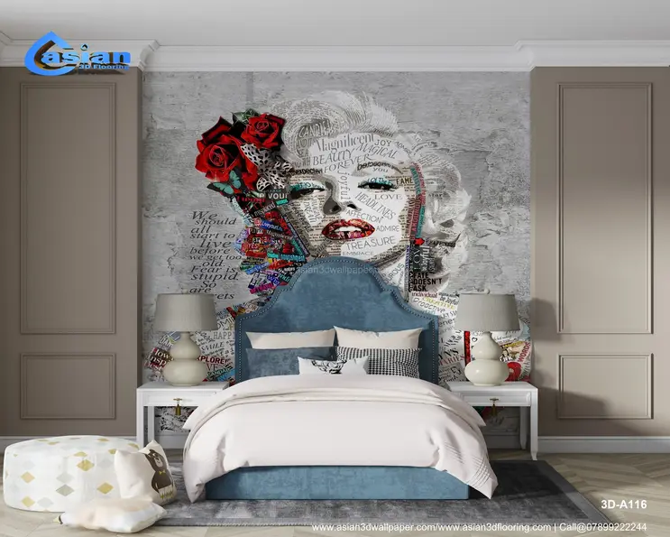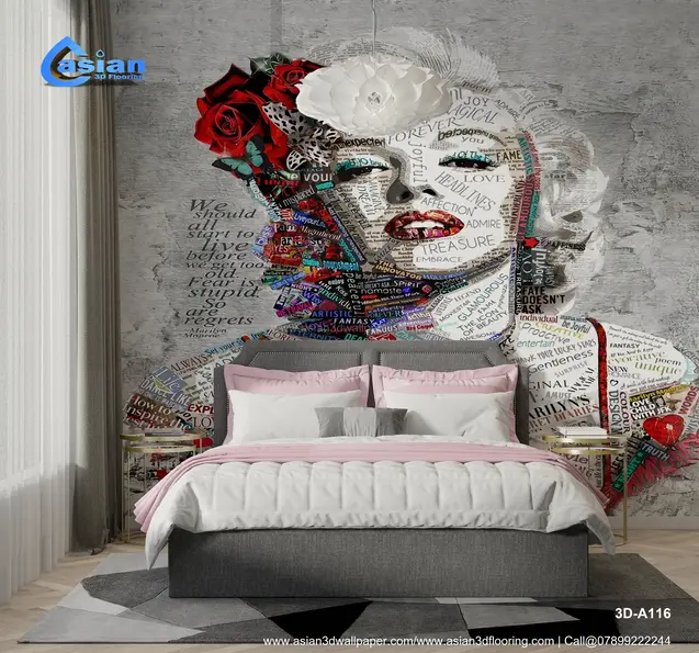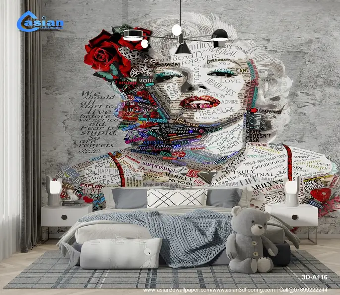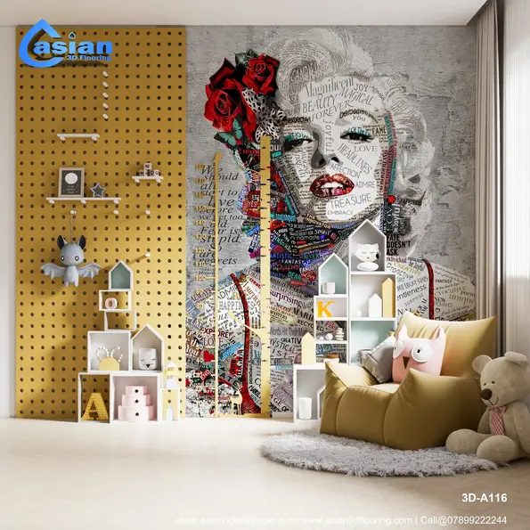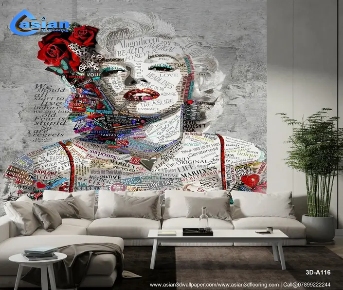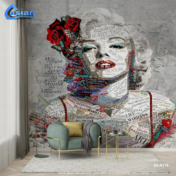 This stunning collage wallpaper art features the iconic Marilyn Monroe, crafted from words that reflect her beauty, fame, and spirit. The artwork is a perfect blend of pop culture and artistic expression, where colorful typography creates a striking visual impact. Ideal for those who appreciate vintage glam and artistic interpretation, this wallpaper brings a touch of elegance and creativity to any room. Product Benefits :- This Marilyn Monroe word art wallpaper combines artistic typography with a vintage portrait, adding both elegance and a touch of glamour to any space.