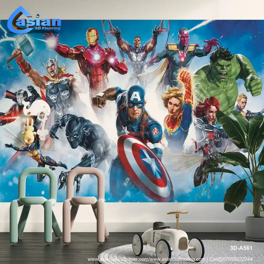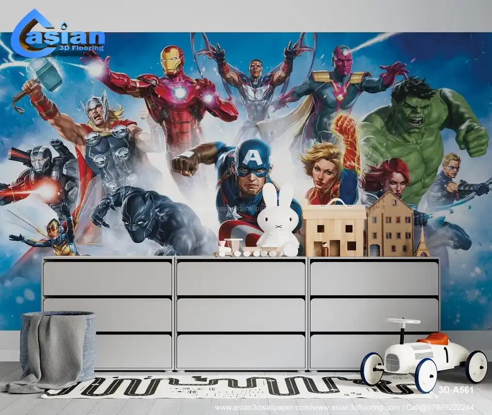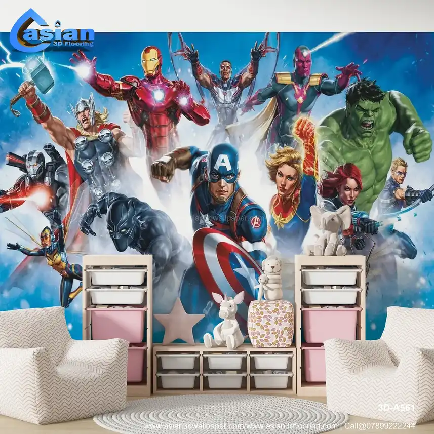 Marvel Avengers Peel and Stick Wall Mural - Captain America, Iron Man, Thor, Hulk & More - Action-Packed Room Decor||3D-A561