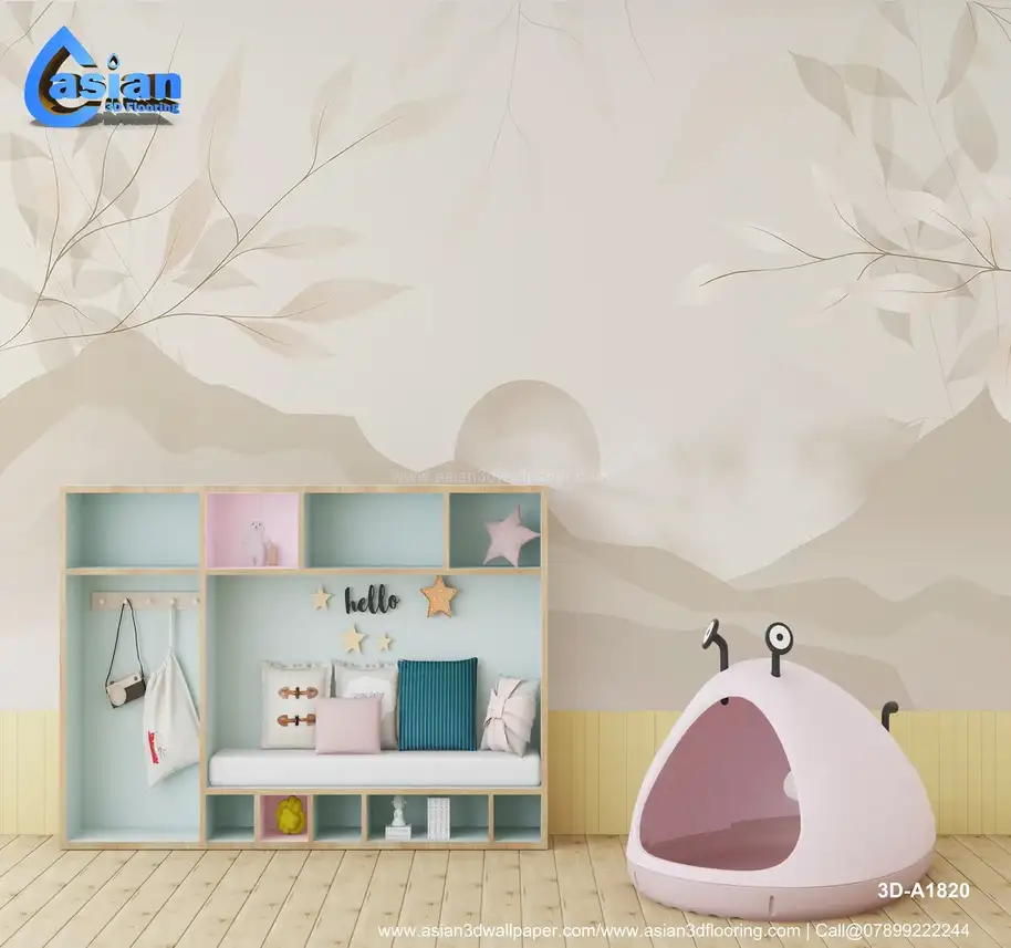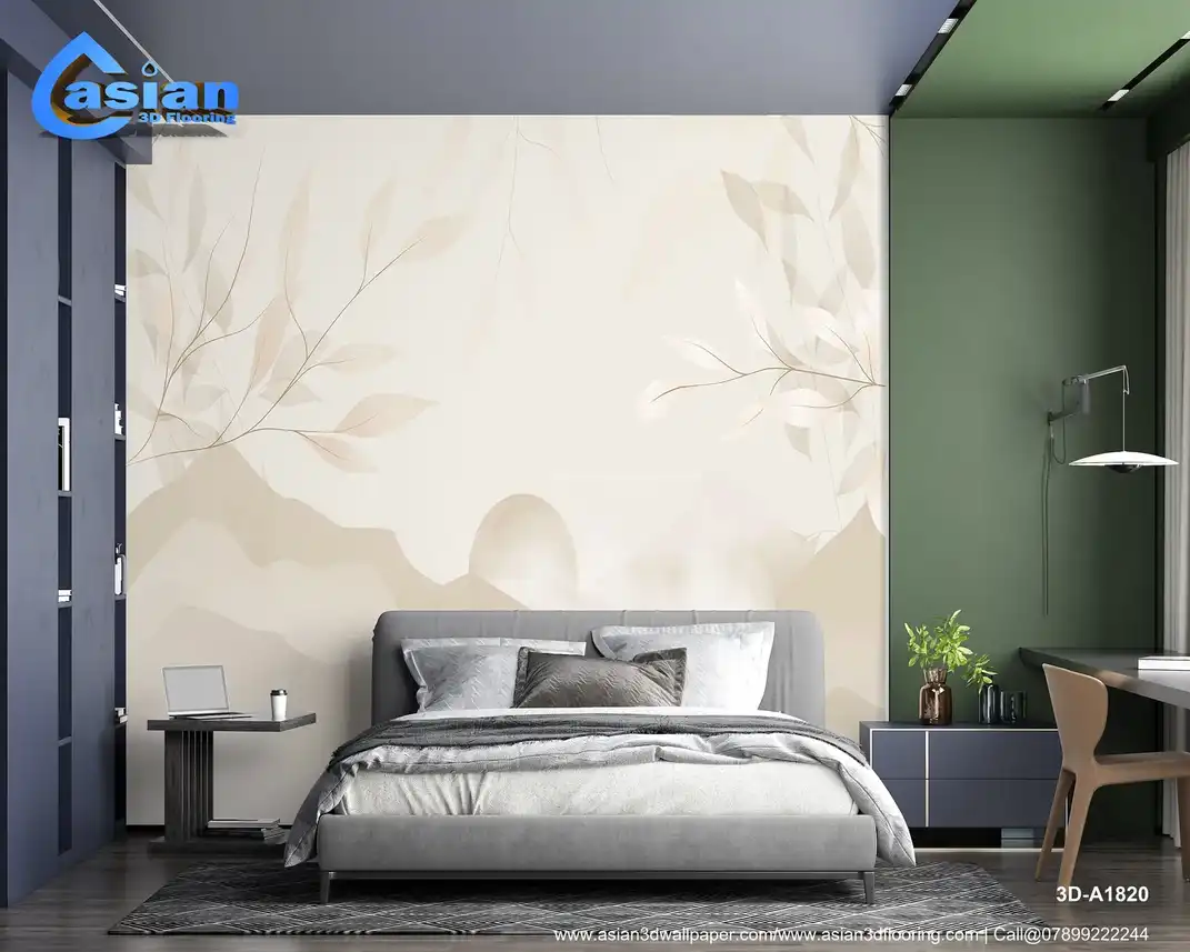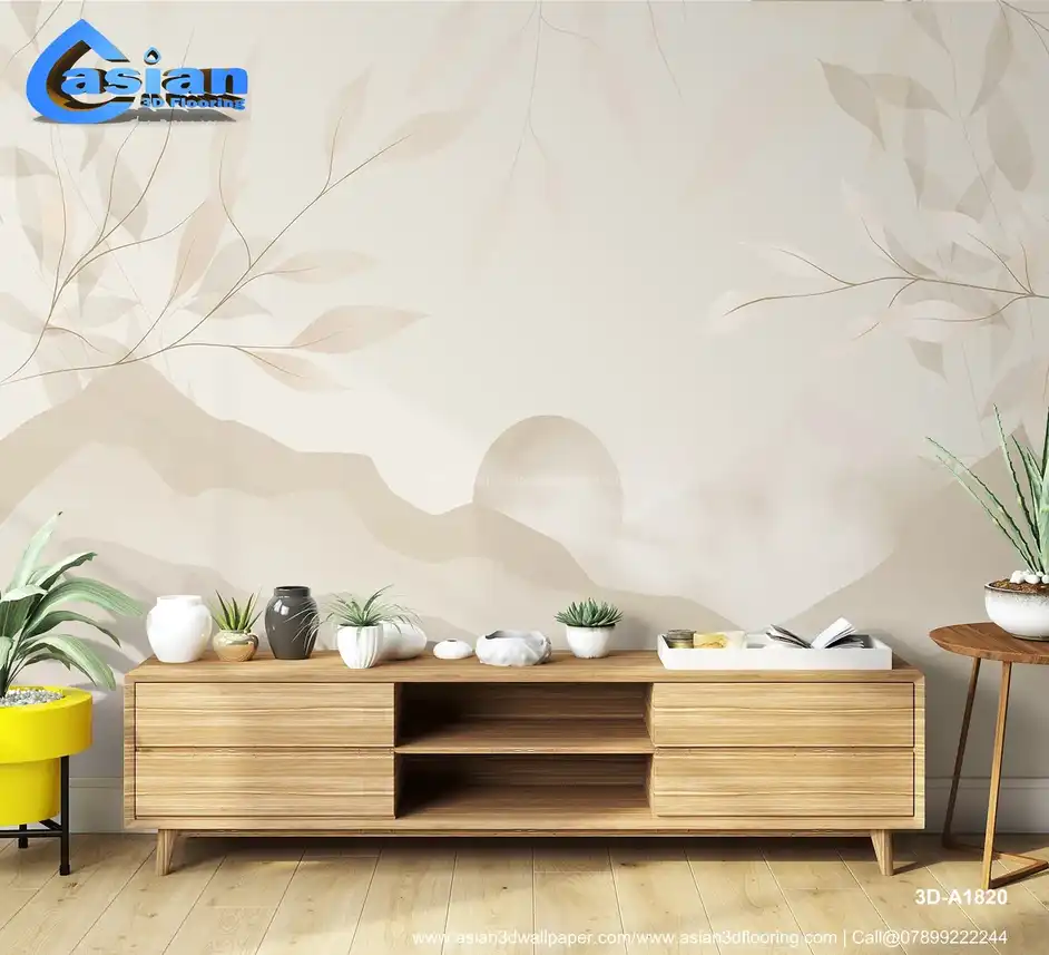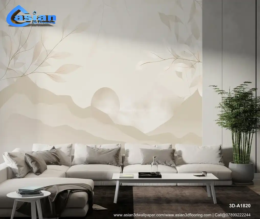 Minimalist Beige Mountain & Leaves Wallpaper||3D-A1820