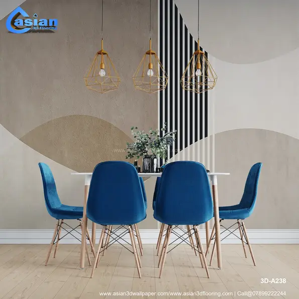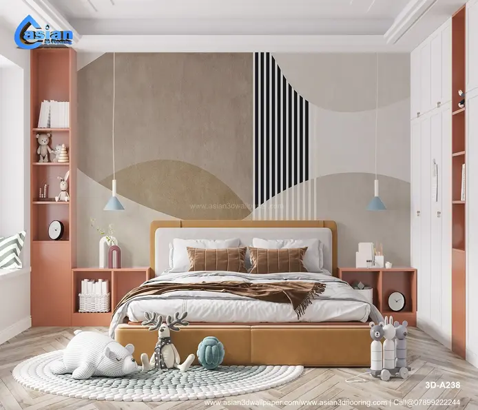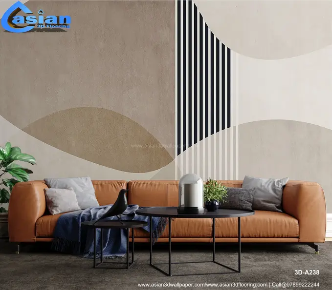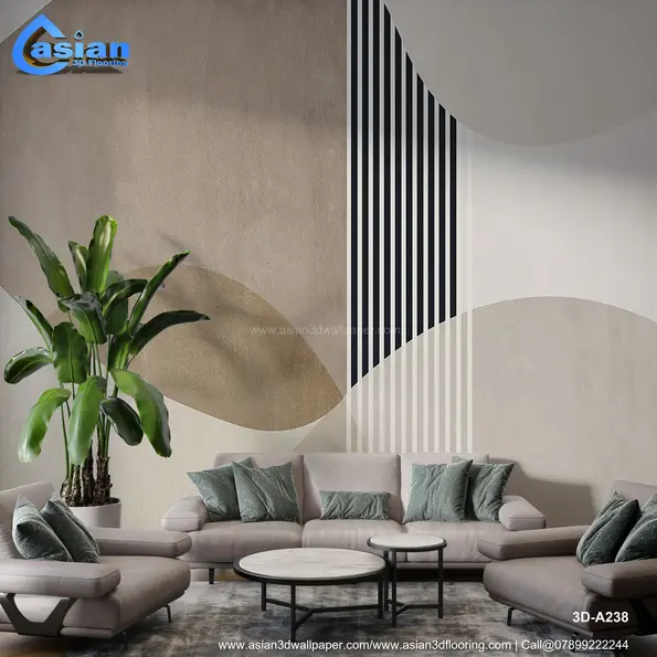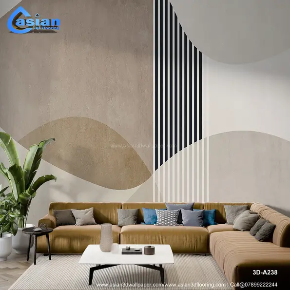 This 3D wallpaper features a minimalist geometric design with soft curves, earthy tones, and sleek vertical stripes. The contrast between the curved forms and the striped pattern adds sophistication and modernity, making it an excellent choice for living rooms, offices, or upscale interiors. Product Benefits :- Adds a sleek, modern aesthetic to any room with a balanced mix of curves, neutral tones, and sharp lines.