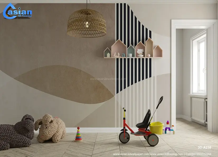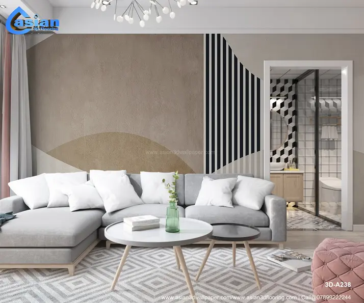 Minimalist Geometric 3D Wallpaper with Neutral Tones and Stripes||3D - A238
