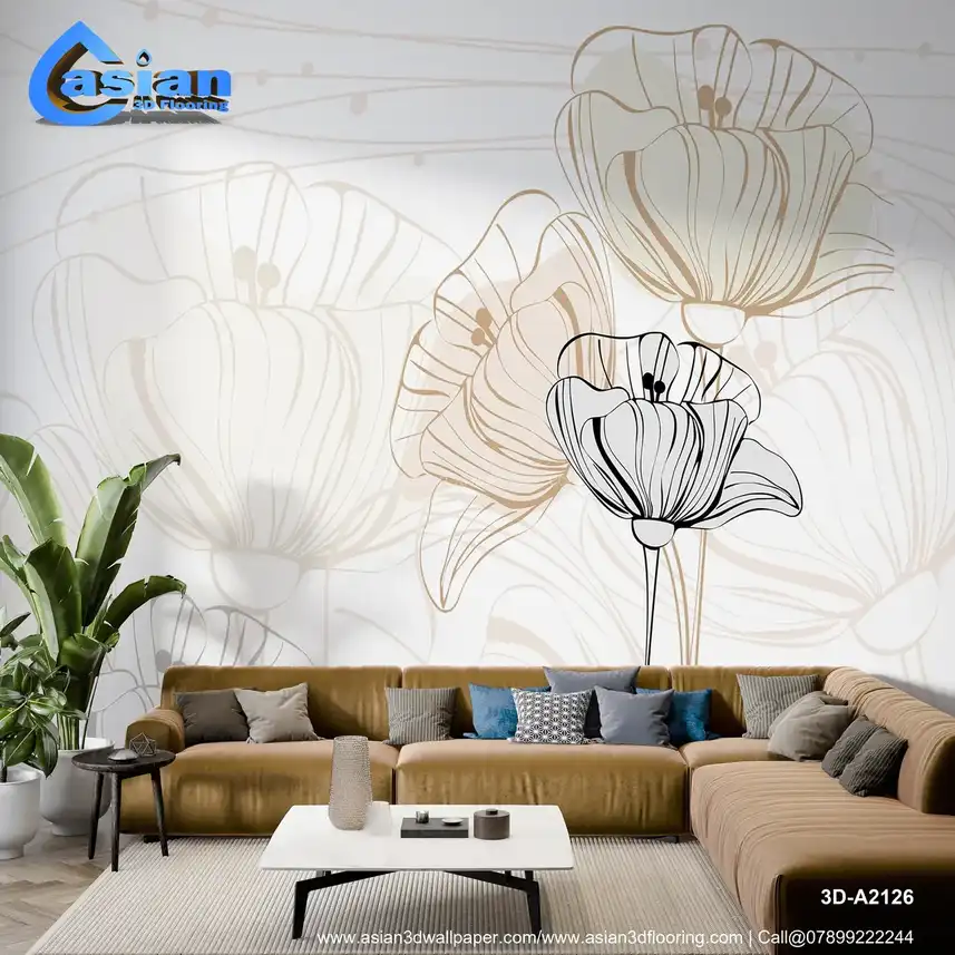 This image features a stylized, line art illustration of poppies against a light background. The poppies are depicted with simple, flowing lines, creating a delicate and elegant appearance. Some poppies are filled with a light beige or cream color, while others are just outlines, adding visual depth. The background is a soft, off-white or light beige with subtle, curved lines that enhance the minimalist aesthetic. The overall style is modern, abstract, and sophisticated. Ideal for creating a calming and artistic atmosphere in living rooms, bedrooms, studios, or as a stylish desktop or phone background. High-resolution image available for download. Benefits:- Creates a calming and artistic atmosphere with a touch of modern elegance and sophistication. The minimalist design and simple lines are visually appealing and versatile. High-resolution image suitable for various applications. Free download available.