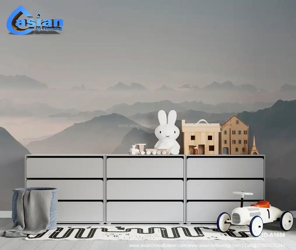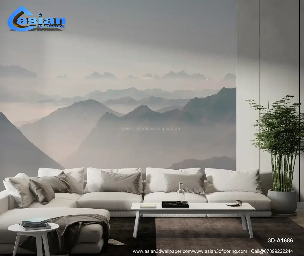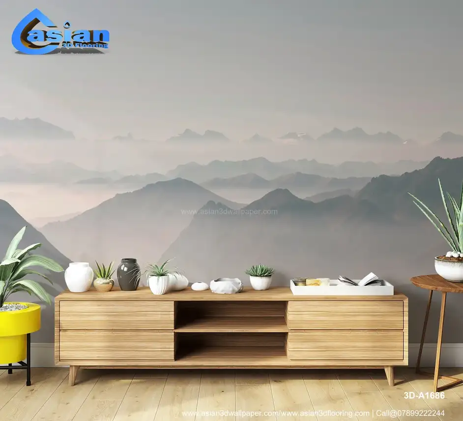 A serene wallpaper depicting a misty mountain range in soft pastel tones. The calming layers of mountains shrouded in mist create a tranquil and peaceful atmosphere, perfect for bedrooms and living rooms. Benefits:- Creates a peaceful, tranquil atmosphere with misty mountain ranges in soft pastel colors, perfect for any space in need of a calming ambiance.