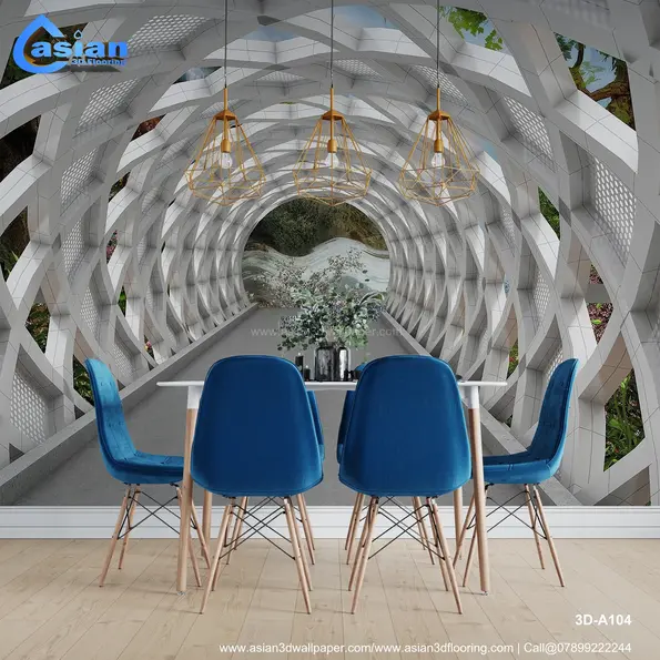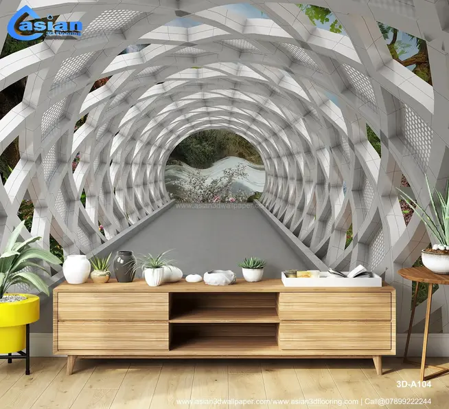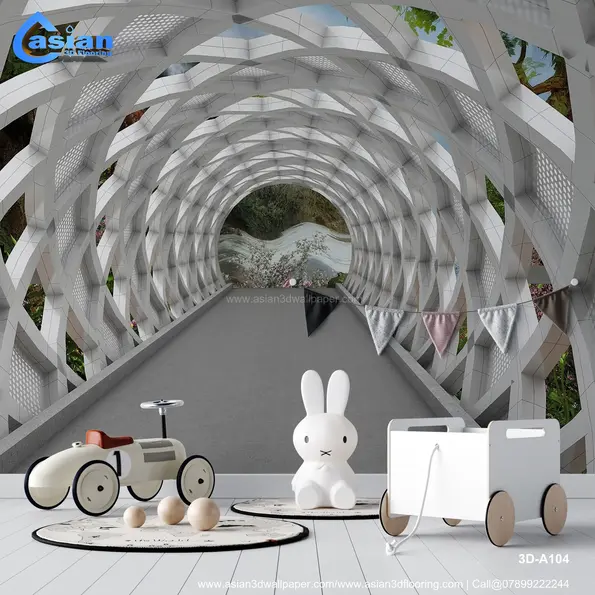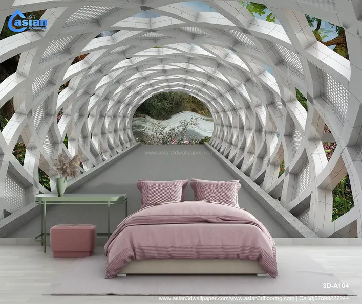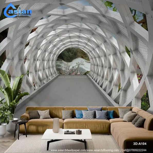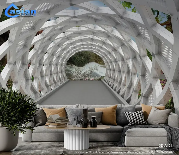 This unique wallpaper features a modern architectural tunnel with a sleek, white geometric structure and a breathtaking view of a lush green landscape at the end. The clean, futuristic design with natural elements provides an artistic yet serene atmosphere for any interior space. Ideal for adding a contemporary and peaceful touch to living rooms, hallways, and offices, this wallpaper combines geometric aesthetics with the beauty of nature. Product Benefits :- Adds a blend of modern architectural beauty and nature?s tranquility, transforming any space into a creative, serene environment.