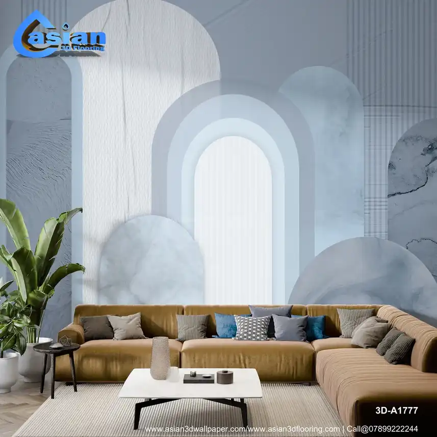 Modern Blue Abstract Arch Wallpaper||3D-A1777