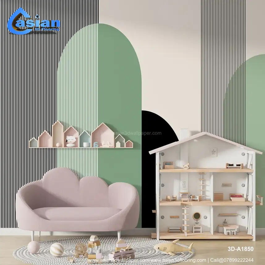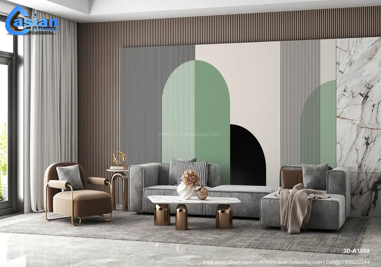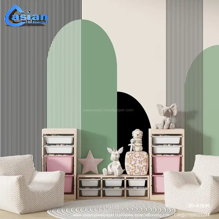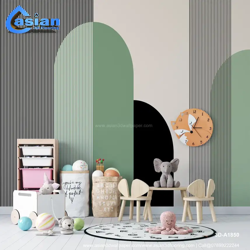 Modern Green and Black Geometric Wallpaper||3D-A1850