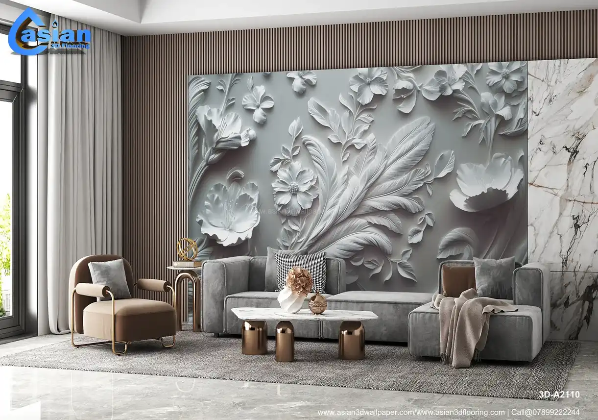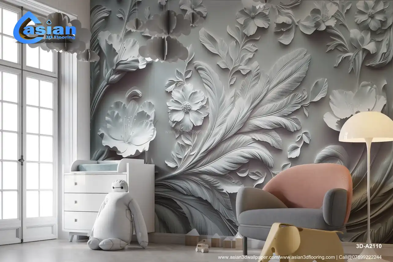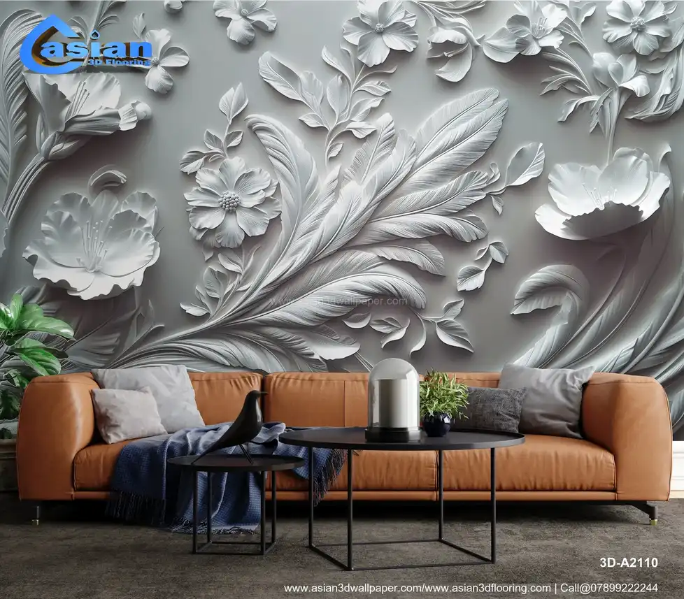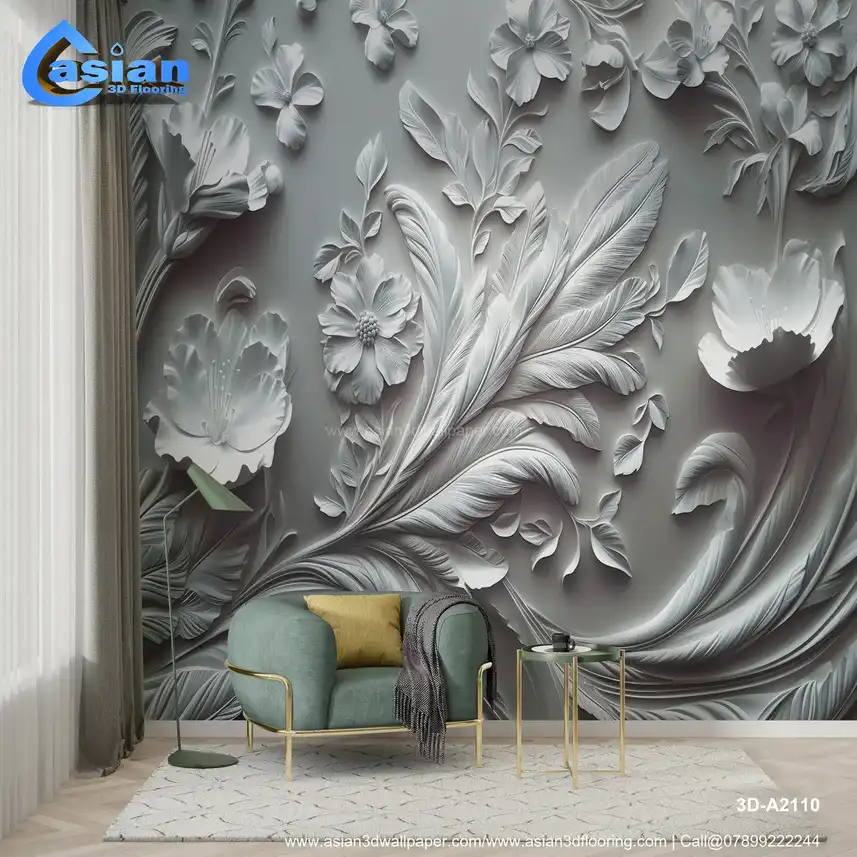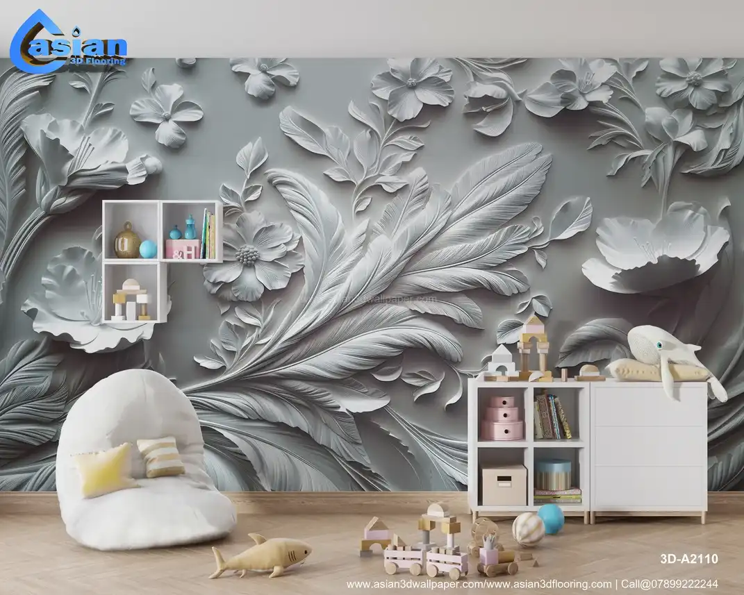 This image showcases a highly ornate, sculpted or embossed floral design in shades of white and gray, creating a striking monochromatic effect. The intricate design includes various flowers, leaves, and stylized, feather-like elements, arranged in a rich and detailed composition. The three-dimensional, relief-like quality gives it a strong sense of depth and texture, reminiscent of plasterwork, bas-relief, or similar sculptural techniques. The overall impression is elegant, classical, and has a vintage or antique feel. Ideal for adding a sophisticated and artistic touch to living rooms, bedrooms, dining rooms, or as a luxurious desktop or phone background. High-resolution image available for download. Benefits:- Creates a sophisticated and artistic focal point in any interior space. The intricate details, three-dimensional effect, and monochromatic palette add depth, visual interest, and a timeless elegance. High-resolution image suitable for various applications. Free download available.