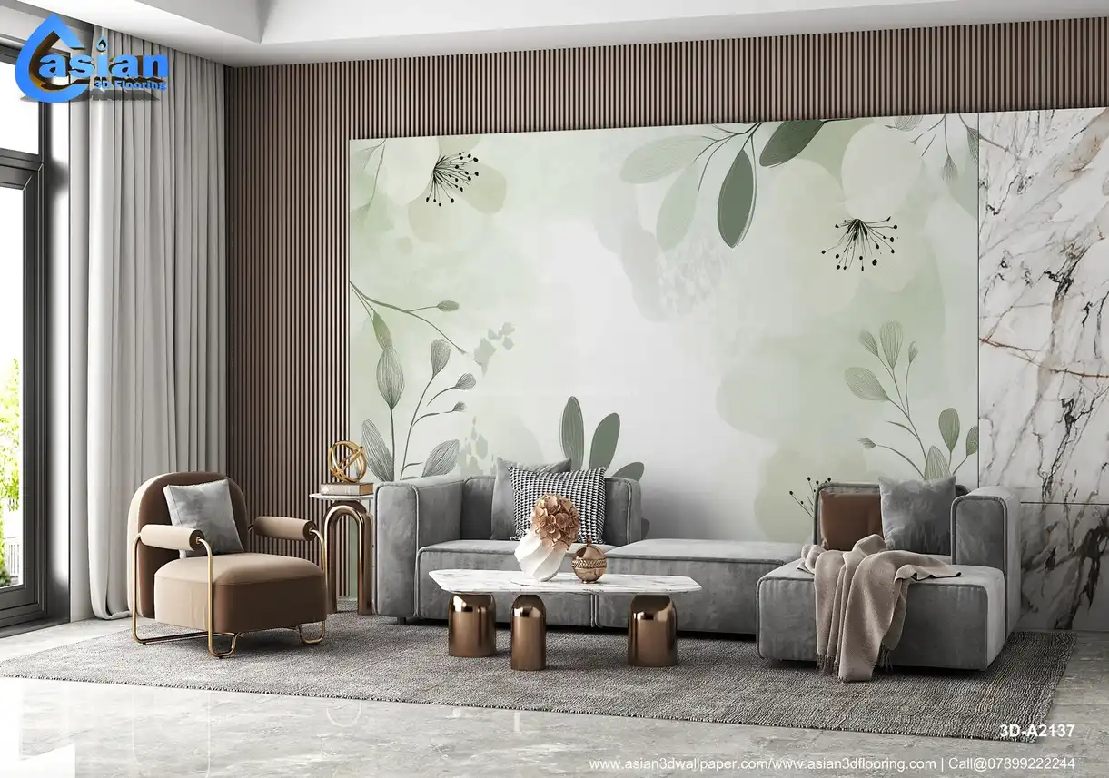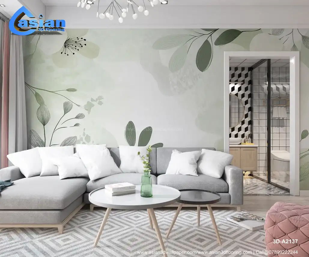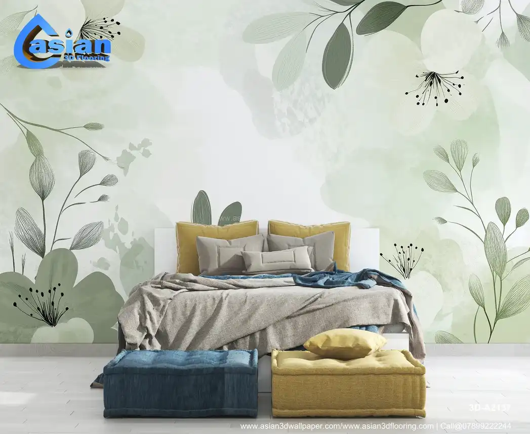 Muted Green Floral Watercolor Background - Natural Floral Design||3D-A2137