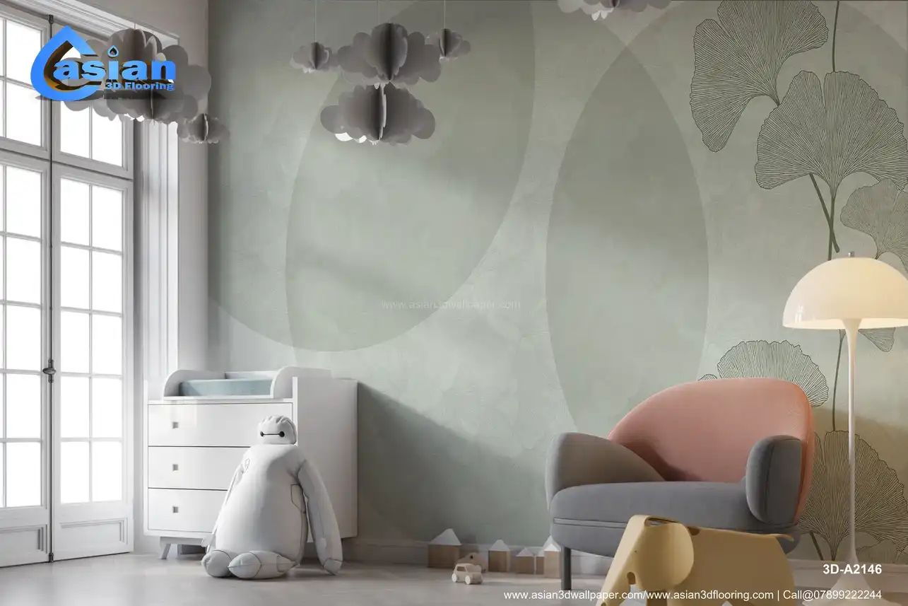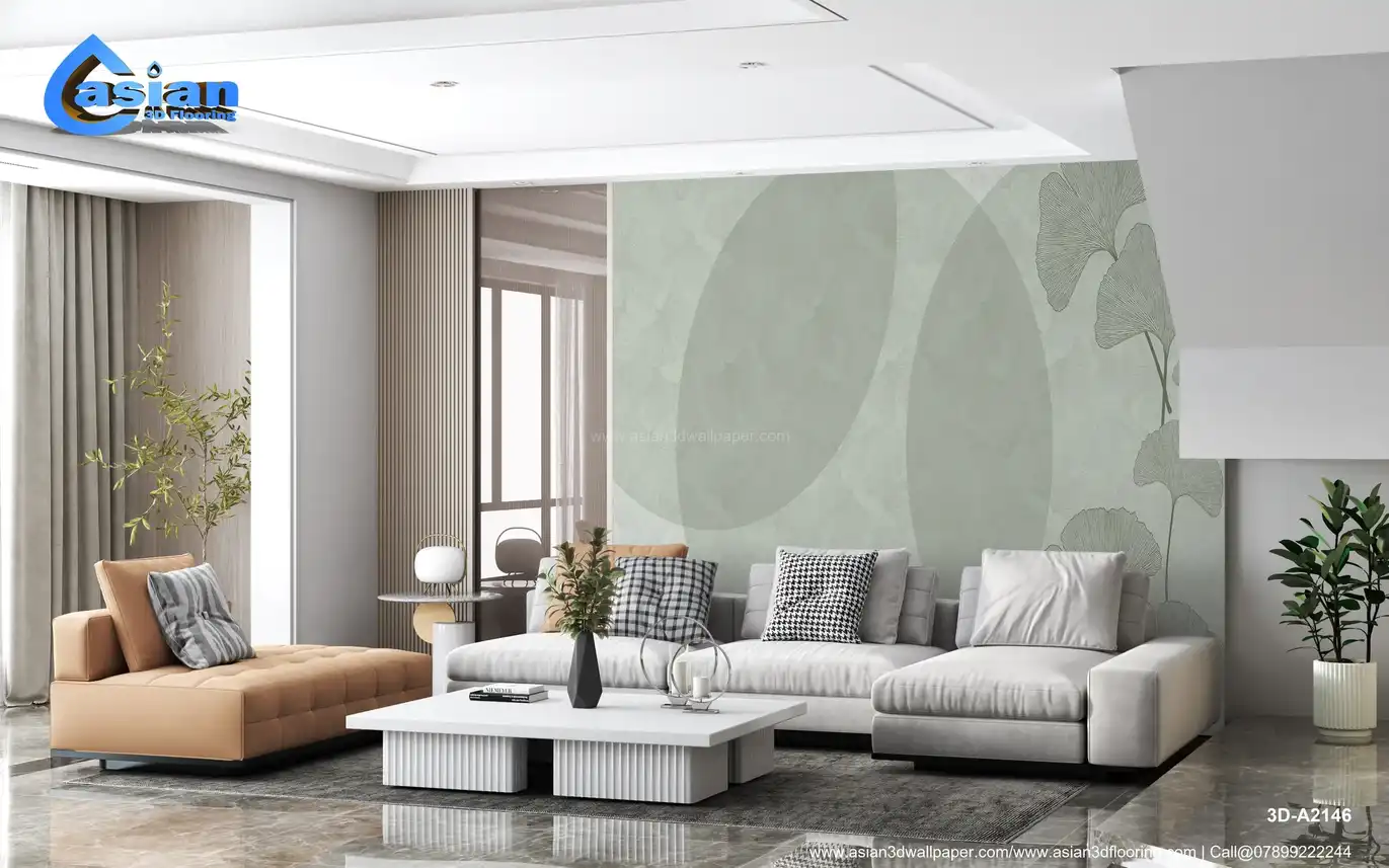 This image presents a subtle and minimalist design featuring stylized Ginkgo Biloba leaves in muted shades of green and off-white against a textured, off-white background. The design incorporates detailed line work within the leaves and large, semi-transparent overlapping circles, creating a sense of depth and layering. The composition is primarily focused on the right side with a vertical arrangement of the ginkgo leaves, leaving ample negative space on the left. This makes it suitable for use as a background or overlay where text or other elements can be placed. The overall impression is modern, elegant, calming, and fresh due to the green hues. The repeating nature of the leaf pattern suggests it could be used for seamless tiling as wallpaper or fabric. Ideal for creating a sophisticated and tranquil atmosphere in living rooms, bedrooms, studios, or as a stylish desktop or phone background. High-resolution image available for download. Benefits:- Creates a sophisticated and tranquil atmosphere with a touch of natural elegance and a fresh, calming feel. The repeating pattern is ideal for seamless tiling. The muted colors and layered design are visually appealing and versatile. The negative space allows for text or graphic placement. High-resolution image suitable for various applications. Free download available.