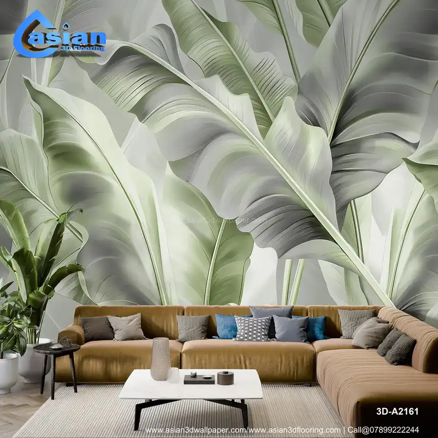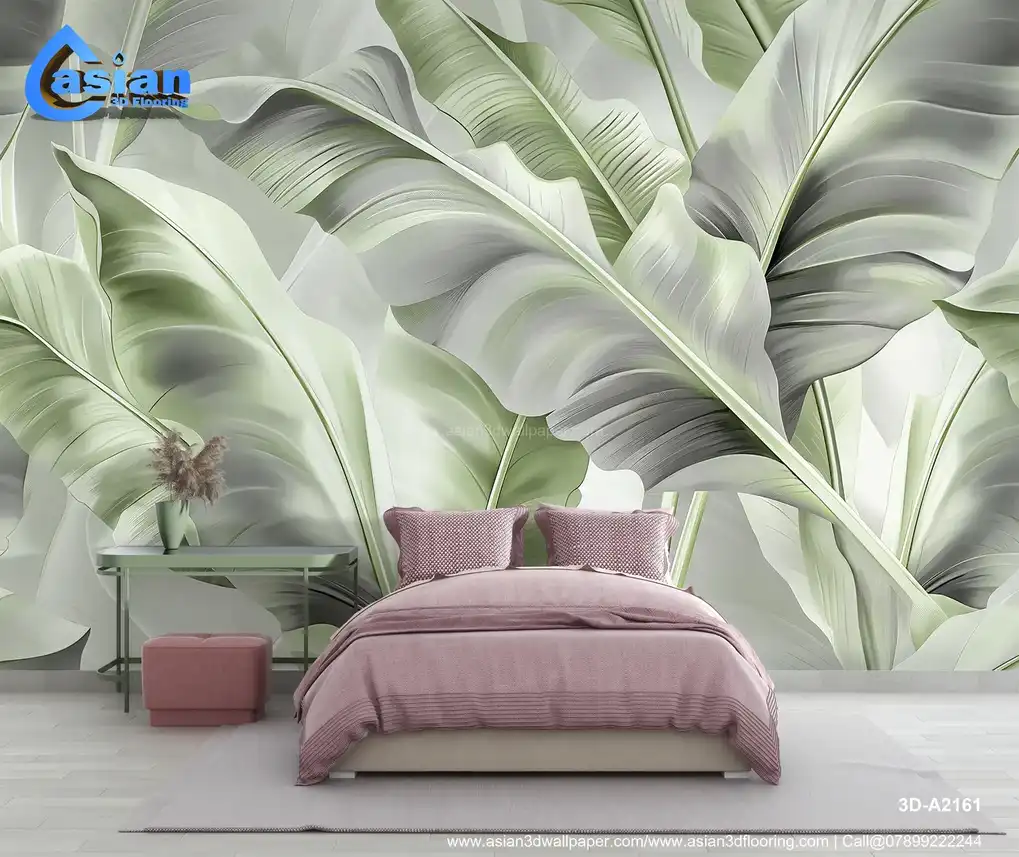 This image showcases a close-up, stylized depiction of large, overlapping tropical leaves, most likely banana or similar broad leaves, in a muted color palette of green, gray, and off-white. The leaves are depicted with a sense of depth and texture, using subtle shading and highlights to create a three-dimensional effect. The composition is dense and dynamic, with the leaves overlapping and angled in various directions, creating a sense of movement and lushness. The overall impression is modern, natural, calming, and fresh. The repeating nature of the pattern makes it suitable for seamless tiling as wallpaper, backgrounds, or fabric prints. Ideal for creating a tranquil and contemporary atmosphere in living rooms, bedrooms, bathrooms, or as a refreshing desktop or phone background. High-resolution image available for download. Benefits:- Creates a tranquil and contemporary atmosphere with a touch of natural elegance and a fresh, calming feel. The repeating pattern is ideal for seamless tiling. The muted colors and layered design are visually appealing and versatile. High-resolution image suitable for various applications. Free download available.