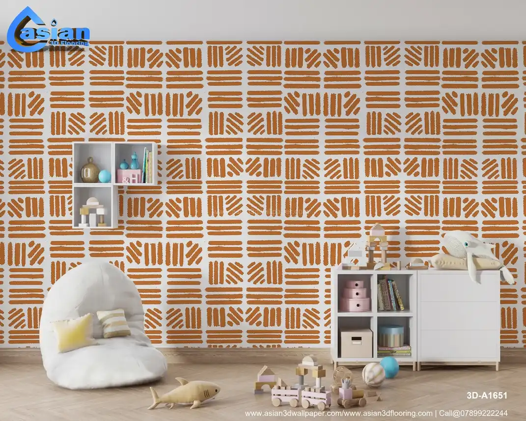 This vibrant orange geometric lines wallpaper adds energy and boldness to any room. The abstract pattern of alternating lines and shapes creates a dynamic and modern look, perfect for contemporary interiors. Benefits:- A bold and modern geometric lines pattern in orange, adding an energetic touch to any contemporary space.