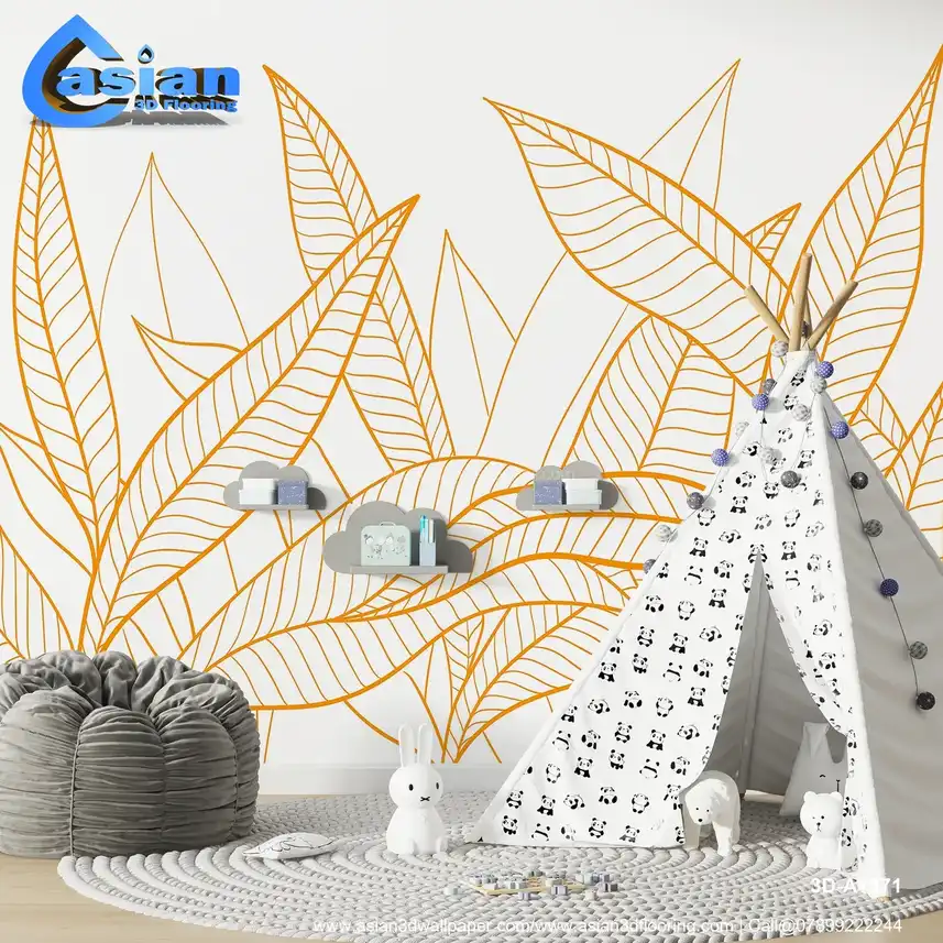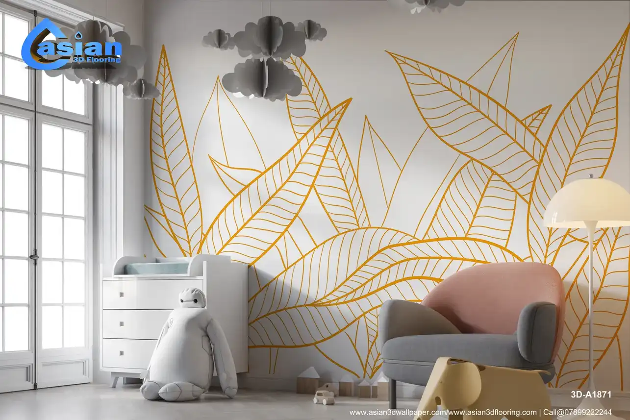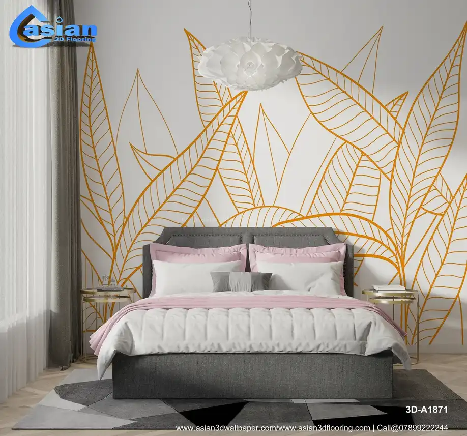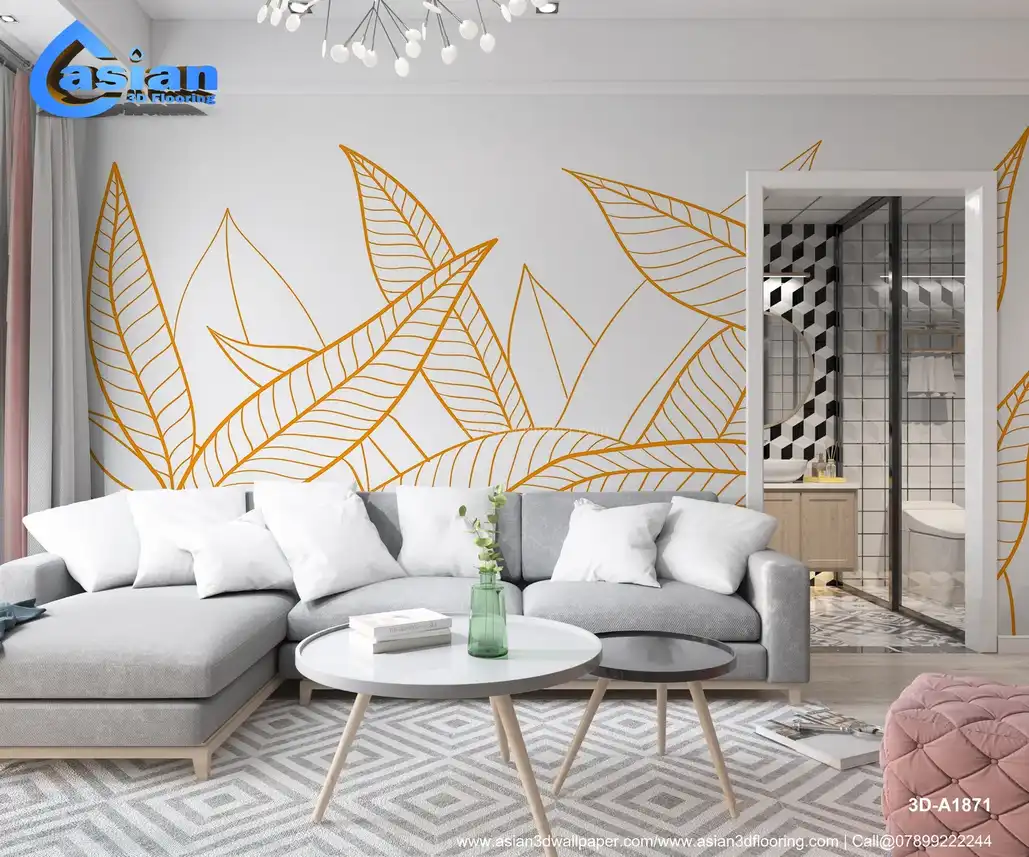 Orange Line Art Leaves Wallpaper ? Bold Minimalist Design||3D-A1871