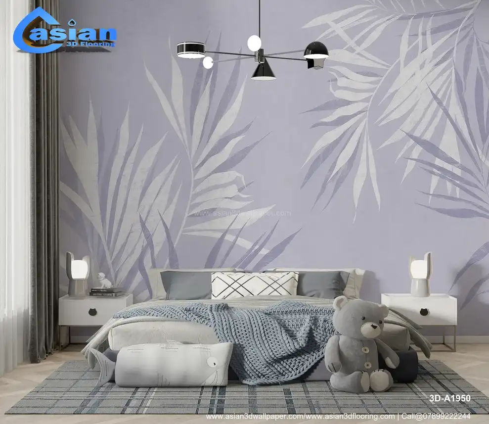 Palm Leaves in Soft Lavender Color Wallpaper||3D-A1950