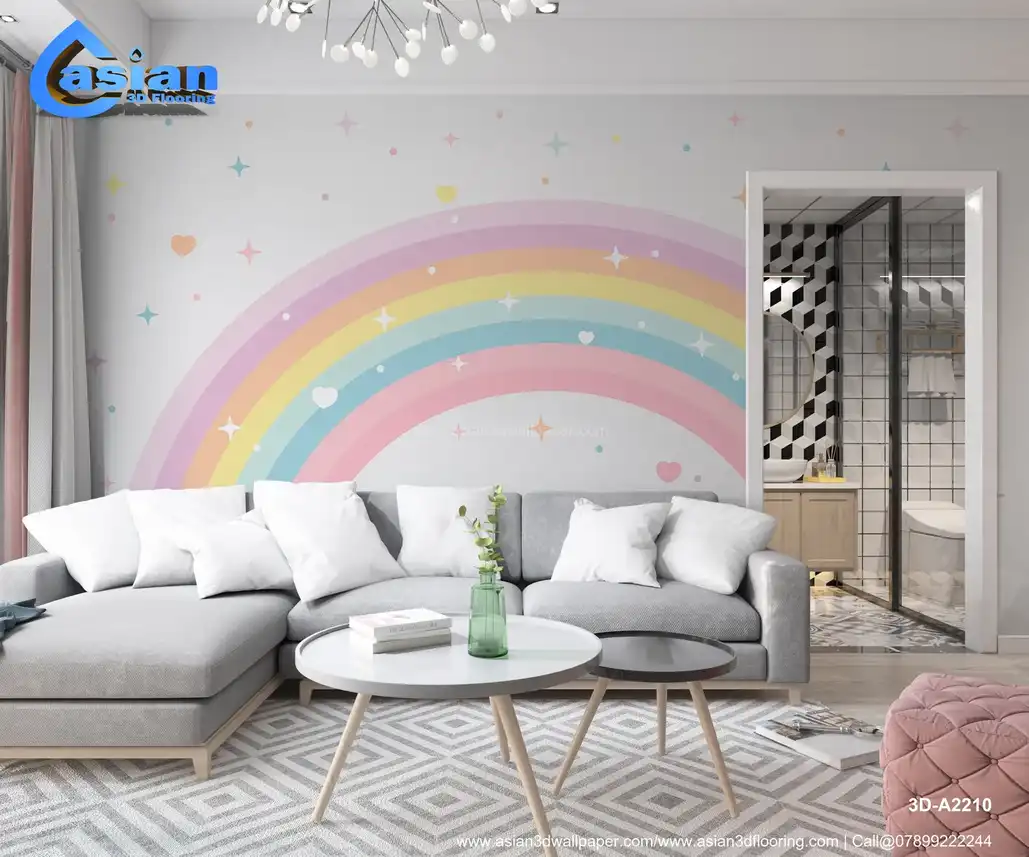 Pastel Dreams: Rainbow and Stars Wall Mural for Kids||3D-A2210
