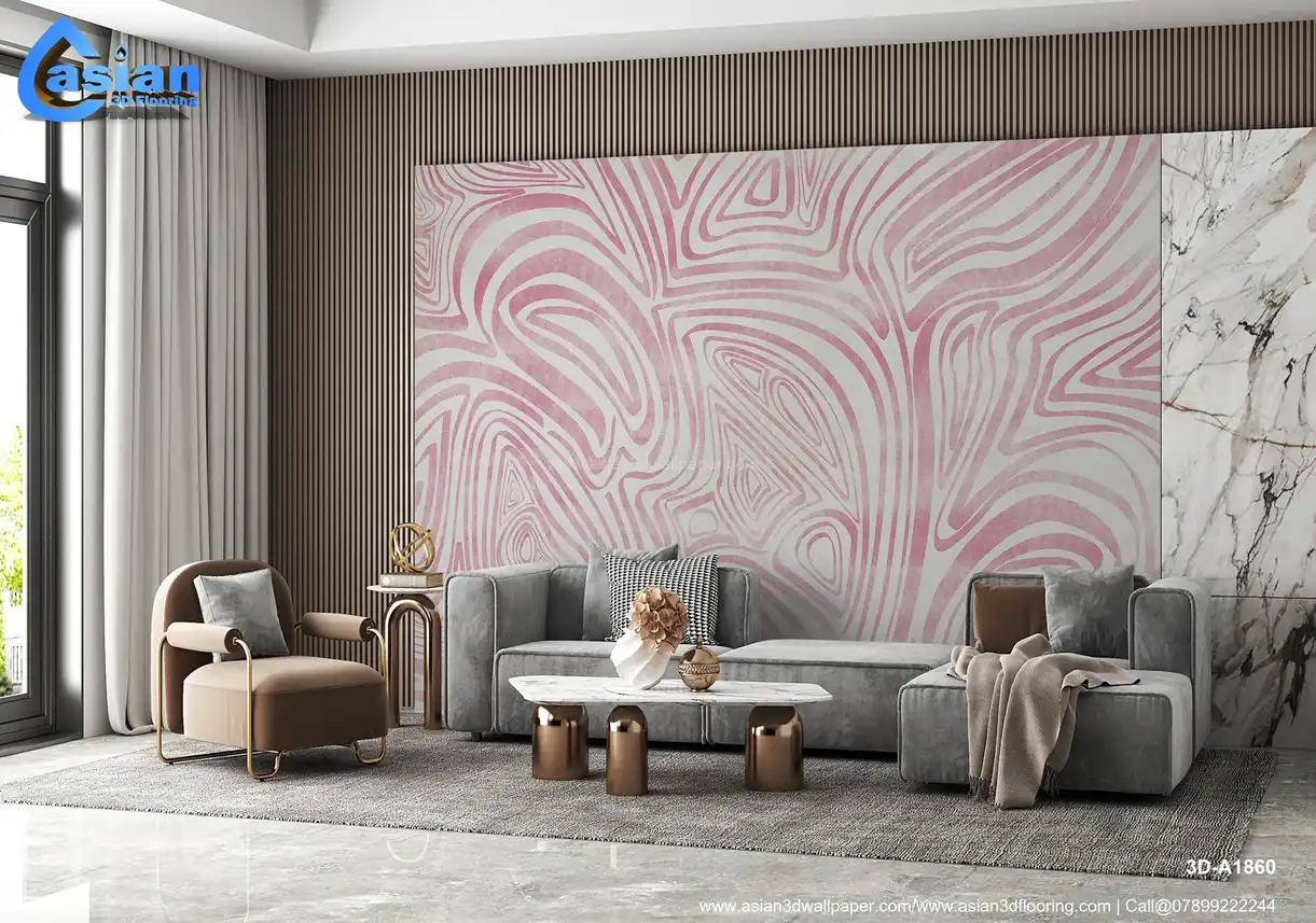 Pink Abstract Line Art Wallpaper ? Organic Minimalist Design||3D-A1860