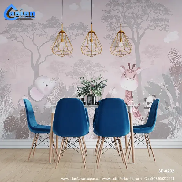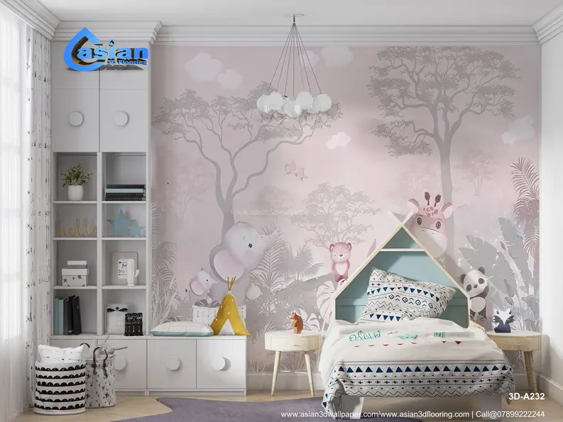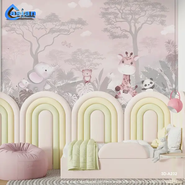 This charming 3D wallpaper in soft pink tones features a whimsical safari with adorable animals like elephants, giraffes, pandas, and bears. Designed to create a calming and playful atmosphere, this wallpaper is perfect for nurseries, playrooms, or young children's bedrooms. Its pastel colors and friendly animal illustrations inspire imagination and bring a delightful, gentle energy to any space. Product Benefits :- Creates a soothing and imaginative environment, ideal for encouraging creative play and relaxation for children.