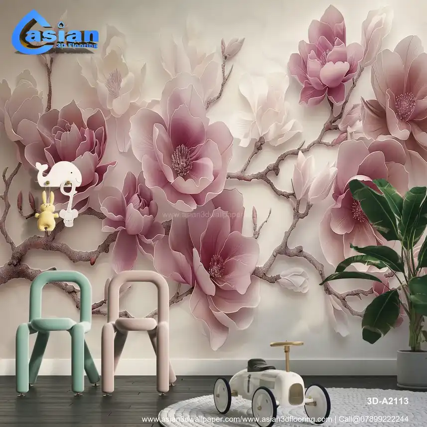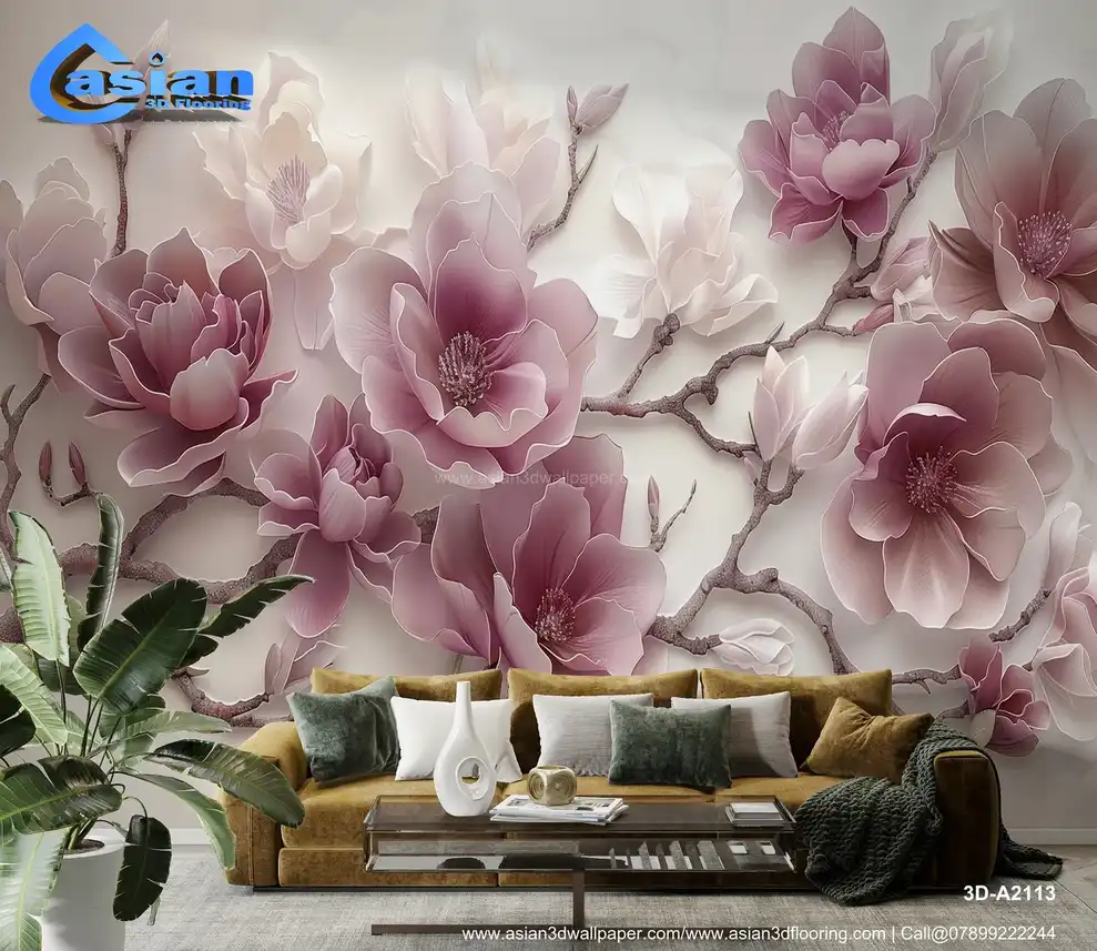 This elegant image showcases stylized magnolia flowers with a distinct three-dimensional, sculpted, or embossed effect. The flowers are rendered in various shades of pink and white, creating a soft, romantic, and sophisticated color palette. The flowers are arranged on delicate branches, adding a natural and organic element to the design. The background is a subtle off-white or light beige, which enhances the depth and texture of the floral arrangement. The overall impression is one of elegance, tranquility, and natural beauty. This design evokes a sense of spring, freshness, and delicate femininity. Ideal for creating a calming and luxurious atmosphere in living rooms, bedrooms, spas, or as a serene desktop or phone background. High-resolution image available for download. Benefits:- Creates a calming and luxurious atmosphere with a touch of natural elegance and feminine beauty. The three-dimensional effect and soft color palette make it visually appealing and versatile. High-resolution image suitable for various applications. Free download available.