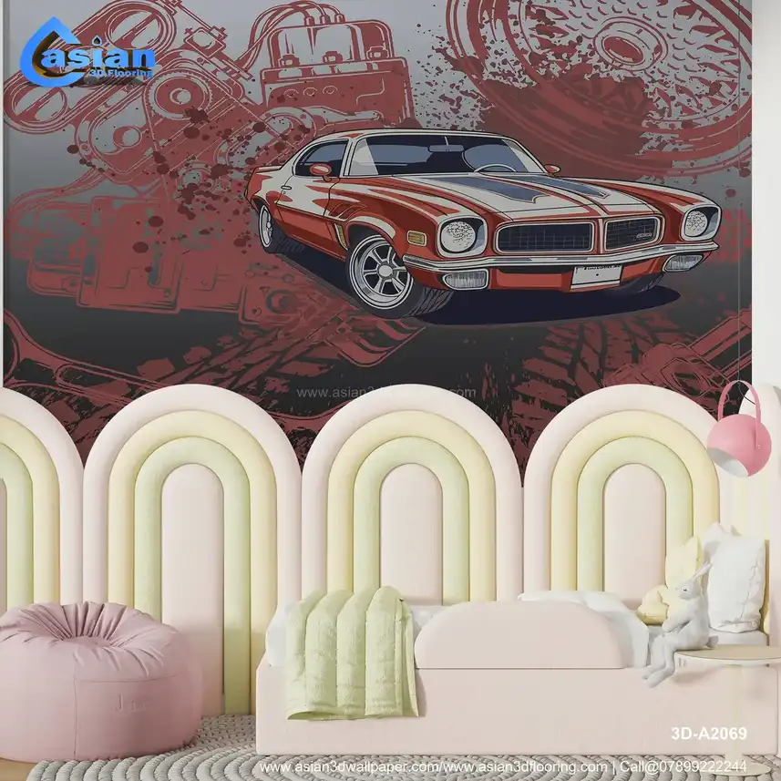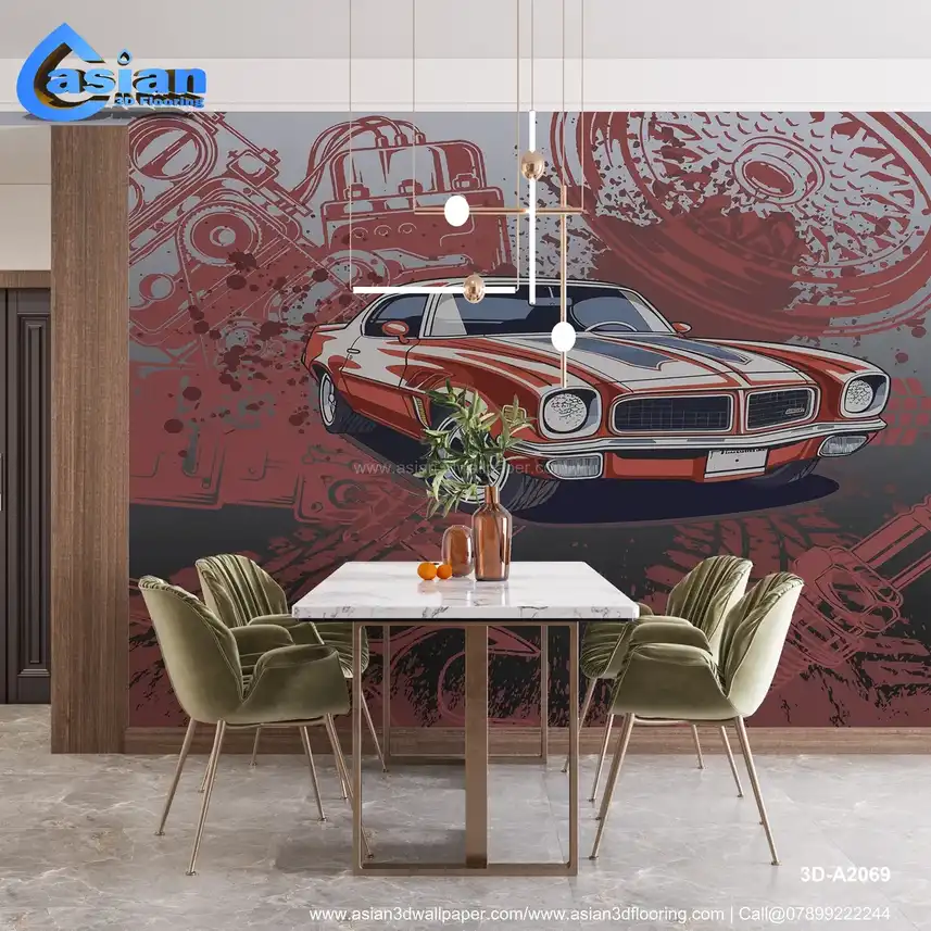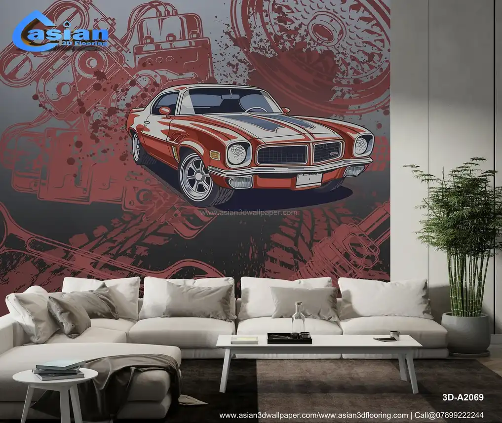 This vibrant image showcases a classic American muscle car, possibly a Chevrolet Camaro, with stylized automotive parts in a dynamic composition. The design evokes the golden age of American muscle cars and automotive culture, with a bold red color scheme adding to the visual impact. The graphic style gives it a vintage poster or illustration feel, ideal for car enthusiasts and automotive-themed designs. Suitable for 3D Wallpaper, best Wallpaper, 3D Wallpaper, posters, prints, and automotive blogs or websites. High-resolution image available for download. Benefits:- Creates a sense of nostalgia and appreciation for classic American automotive design. The vibrant red color and dynamic composition make it visually striking. High-resolution image suitable for various applications. Free download available.