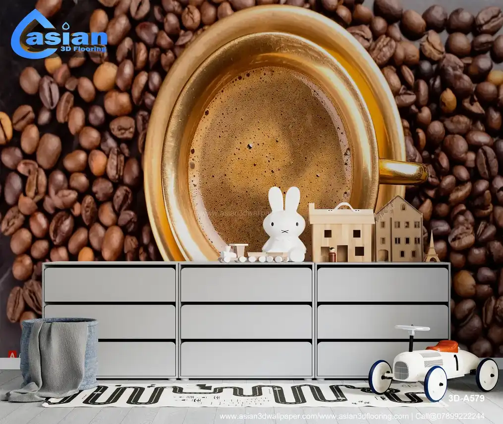 Dive into the world of coffee with this immersive wallpaper featuring a golden espresso cup surrounded by freshly roasted coffee beans. This design brings warmth, richness, and a touch of luxury to kitchens, coffee shops, and dining areas, ideal for coffee lovers looking to infuse their space with a cozy ambiance. Benefits:- Adds warmth and coziness, perfect for coffee enthusiasts, creates a sophisticated atmosphere