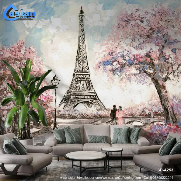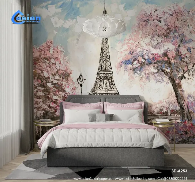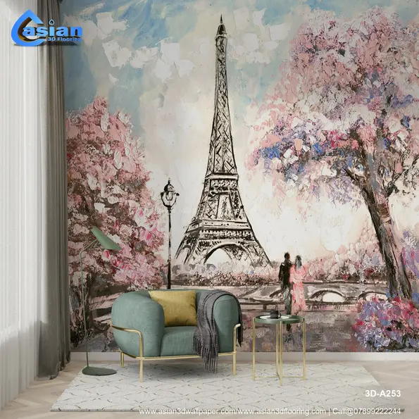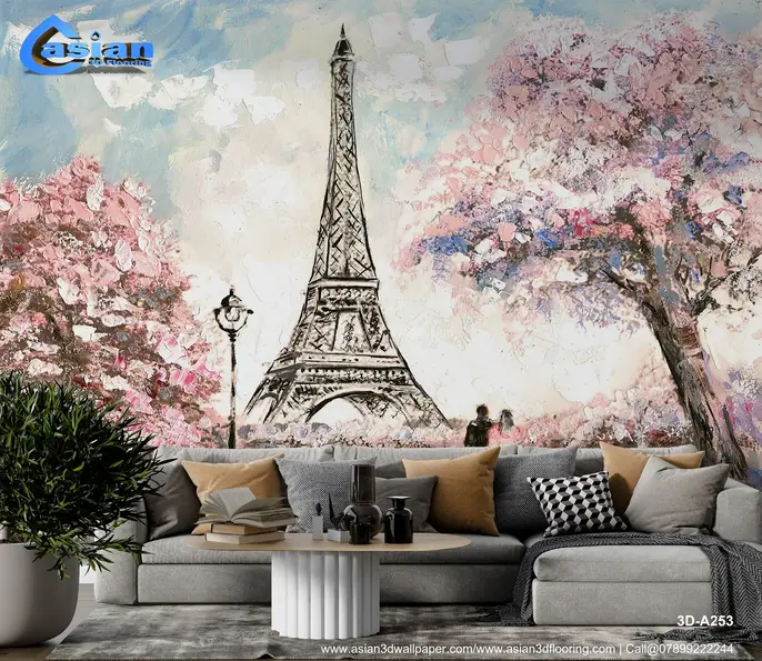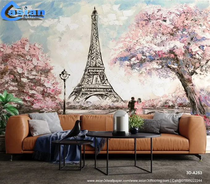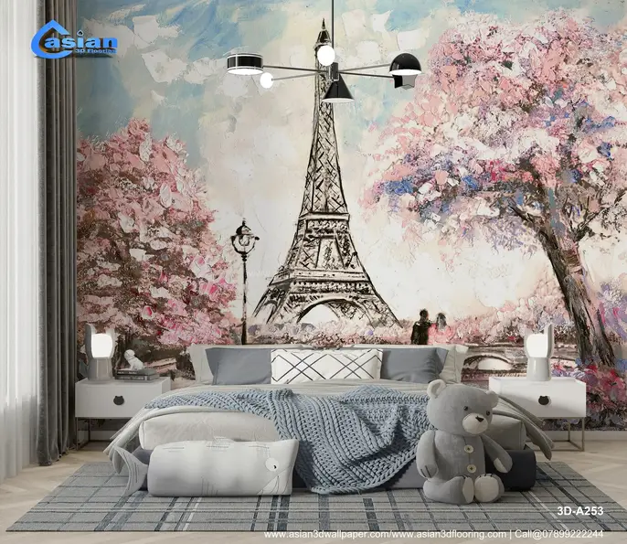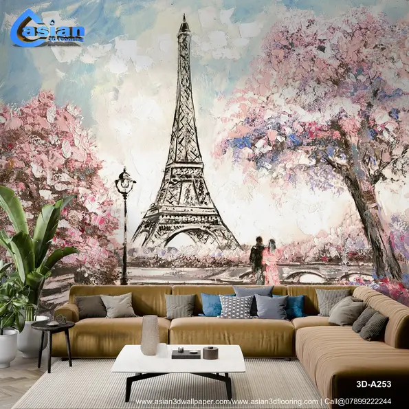 This stunning wallpaper features a romantic scene of the Eiffel Tower framed by cherry blossoms in full bloom. The pastel pink, purple, and blue hues create a dreamy, love-filled atmosphere perfect for bedrooms, living rooms, or even caf?s. The soft, impressionistic art style gives it a unique, hand-painted charm that adds elegance and Parisian sophistication to any space. Product Benefits :- Instantly adds romance and charm to any room, offering a soothing and elegant Parisian aesthetic with blooming cherry trees.