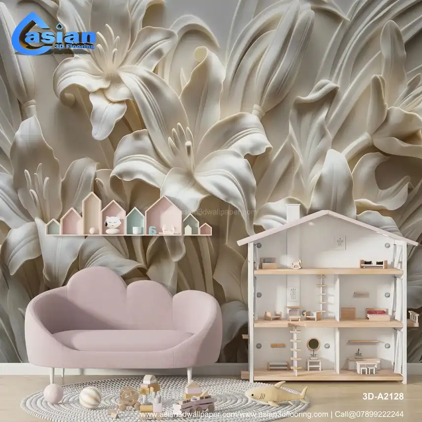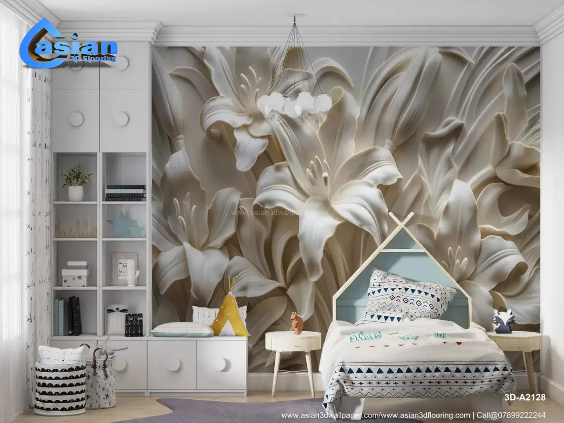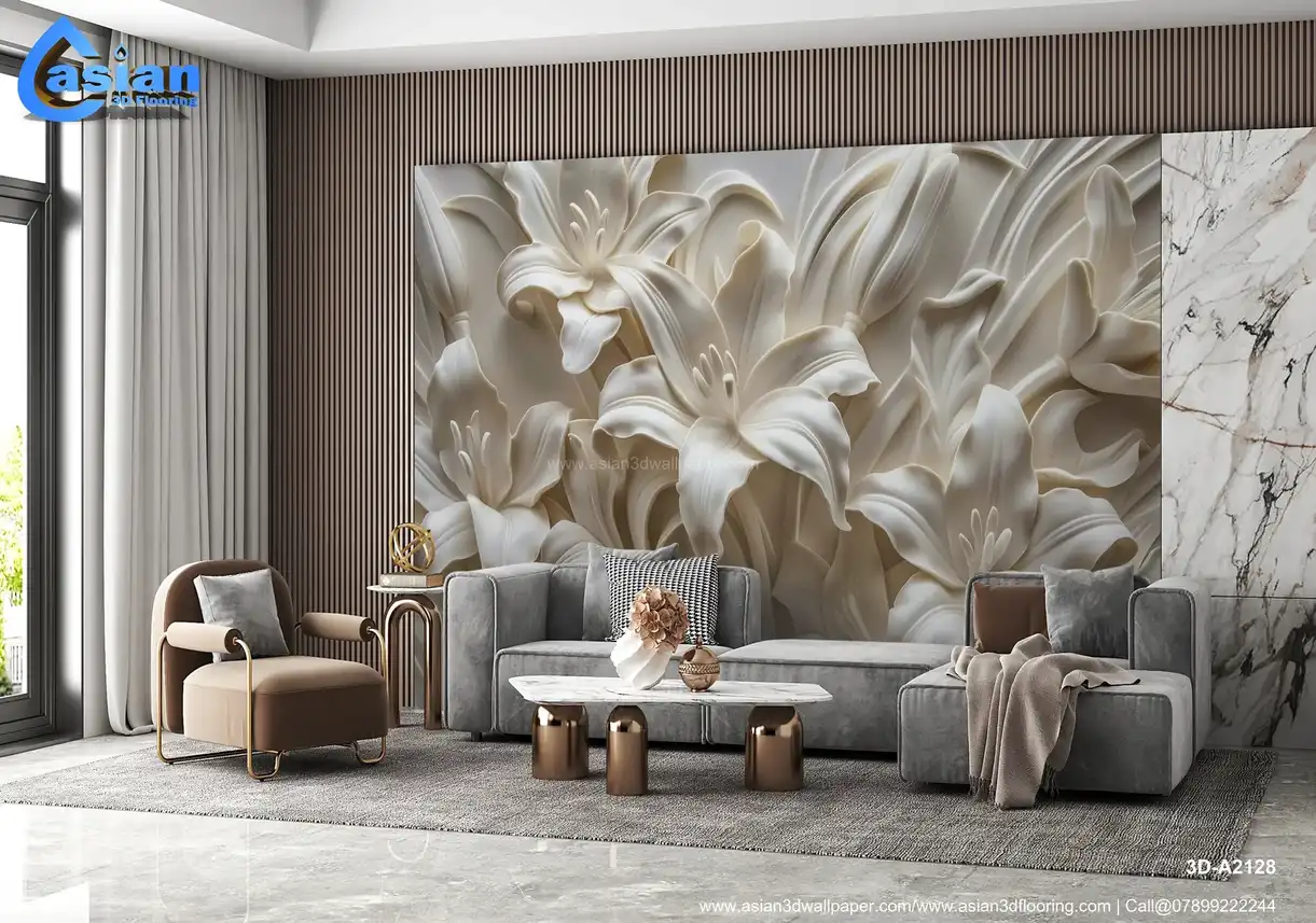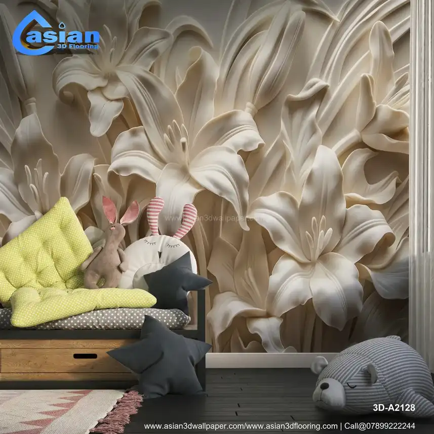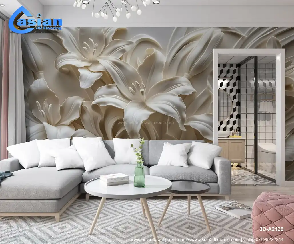 This image showcases a beautifully sculpted or embossed design of lilies, rendered in shades of white and off-white against a subtly textured background. The lilies are depicted with intricate detail, highlighting the delicate curves and textures of their petals, stamens, and leaves. The three-dimensional, relief-like quality creates a strong sense of depth and realism, reminiscent of plasterwork, bas-relief, or similar sculptural techniques. The overall impression is elegant, classic, sophisticated, and timeless. Ideal for creating a refined and artistic atmosphere in living rooms, bedrooms, dining rooms, or as a luxurious desktop or phone background. High-resolution image available for download. Benefits:- Creates a refined and artistic atmosphere with a touch of classic elegance and sophisticated beauty. The intricate details and three-dimensional effect add depth and visual interest. High-resolution image suitable for various applications. Free download available.