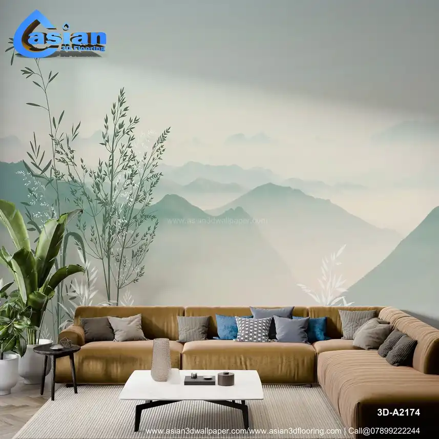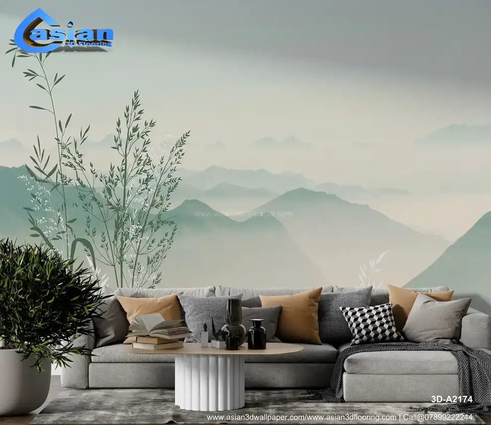 Create a tranquil and refreshing atmosphere with this seafoam green-tinted landscape wall mural. The misty mountains and delicate botanical silhouettes evoke a sense of peace and natural beauty. Perfect for bedrooms, bathrooms, living rooms, or meditation spaces. Made with high-quality, durable materials for easy installation and long-lasting appeal. Visit our Bangalore, Vijayanagar, Majestic store to explore our collection of nature-inspired and calming wall murals. Benefits:- Creates a calming, peaceful, and refreshing atmosphere with a unique color palette. Adds a touch of nature's beauty and delicate elegance to your interior. Made with high-quality, durable materials. Easy to install and remove. Transforms your space into a tranquil retreat with a touch of color.